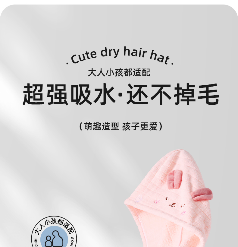 【贝肽斯】儿童干发帽女超强吸水速干宝宝干发巾浴帽亲子包头毛巾成人