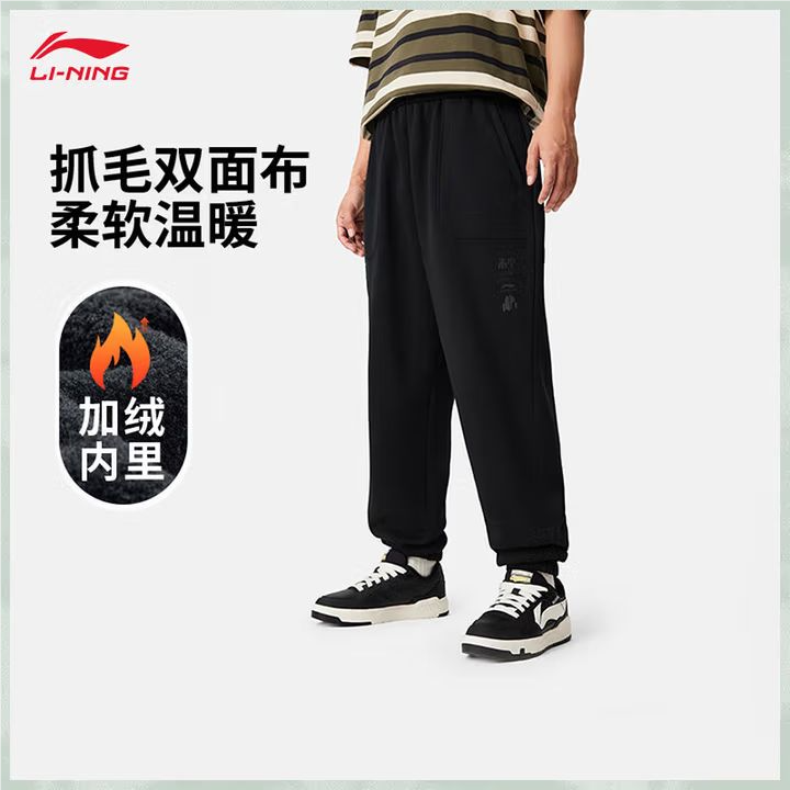 李宁男子加绒束脚运动裤AKLU631-2