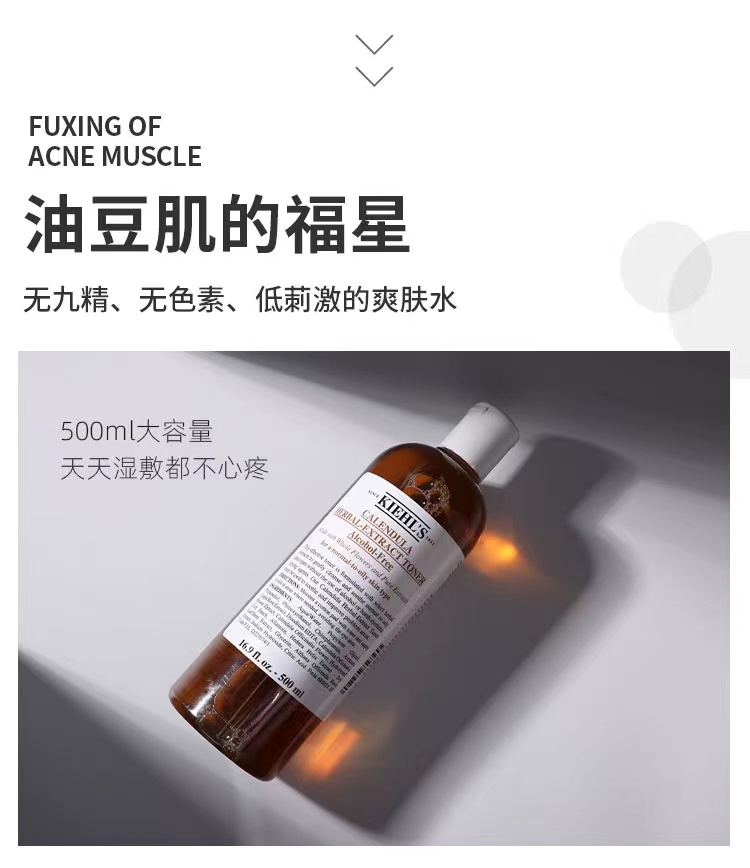 kiehl's/科颜氏金盏花植物精华爽肤水500ml 原植萃补水保湿爽肤水,控油舒缓收缩毛孔