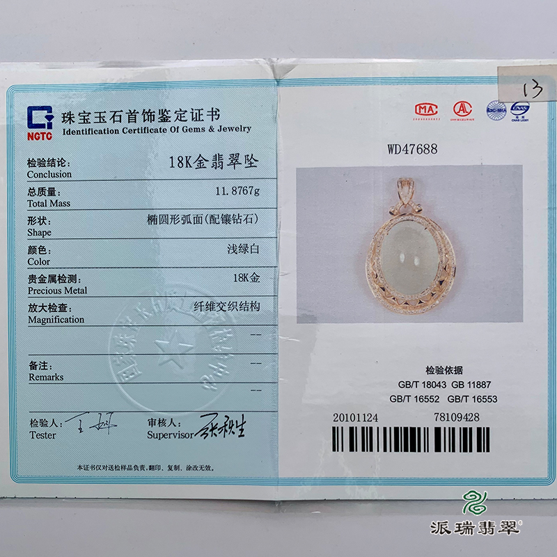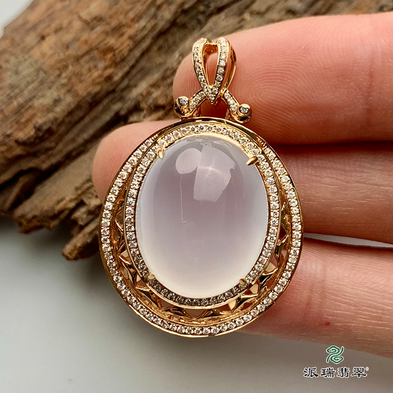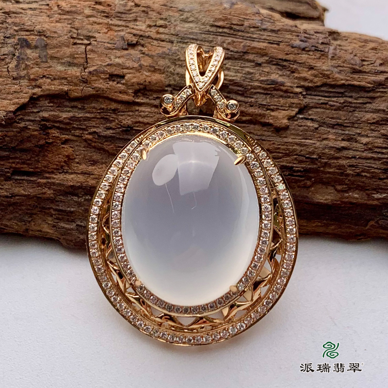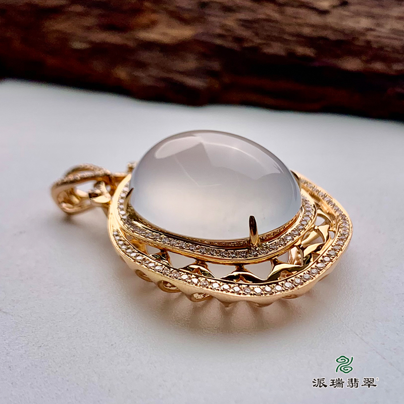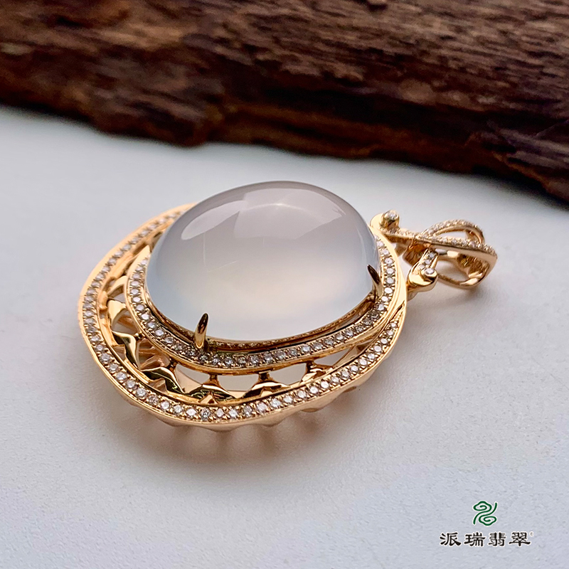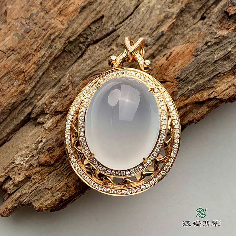 派瑞翡翠 18k金翡翠挂件 冰种 无色