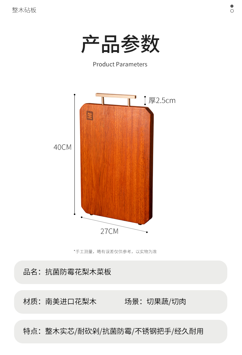 专属# 【下单就送实木筷 一年内开裂免费换新】南美进口花梨木·整木砧板 整木切割非拼接 防霉防裂 无漆无蜡无甲醛 生熟分区 耐砍耐剁