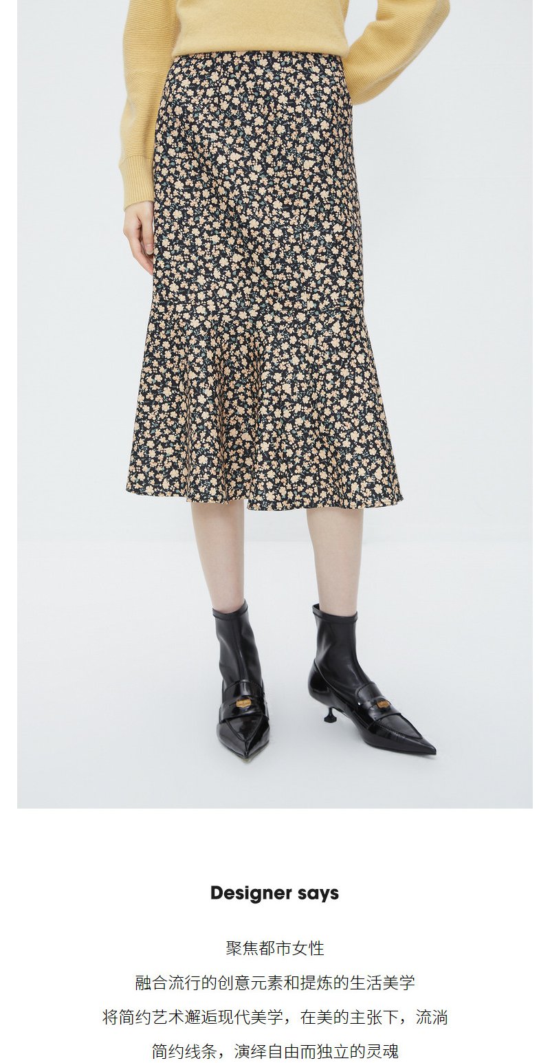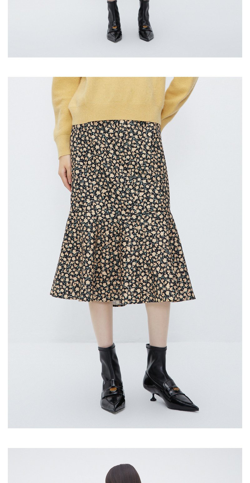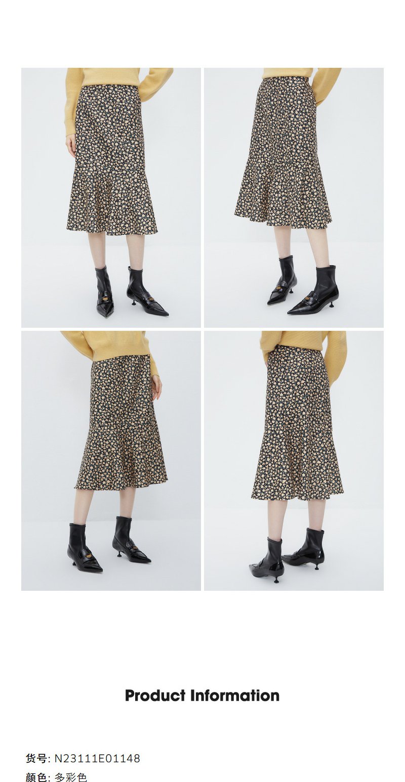 NEELLY纳俪商场同款碎花中长款半身裙女冬新款时尚百搭气质鱼尾裙N23111E01148
