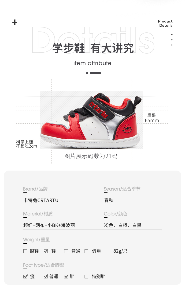 卡特兔春秋款宝宝撞色有型运动鞋 6色 一段/二段