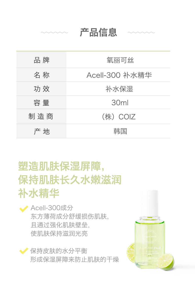 【氧丽可丝】氧丽可丝Acell-300补水安瓶韩国美容院护肤品精华液保湿舒缓30ml