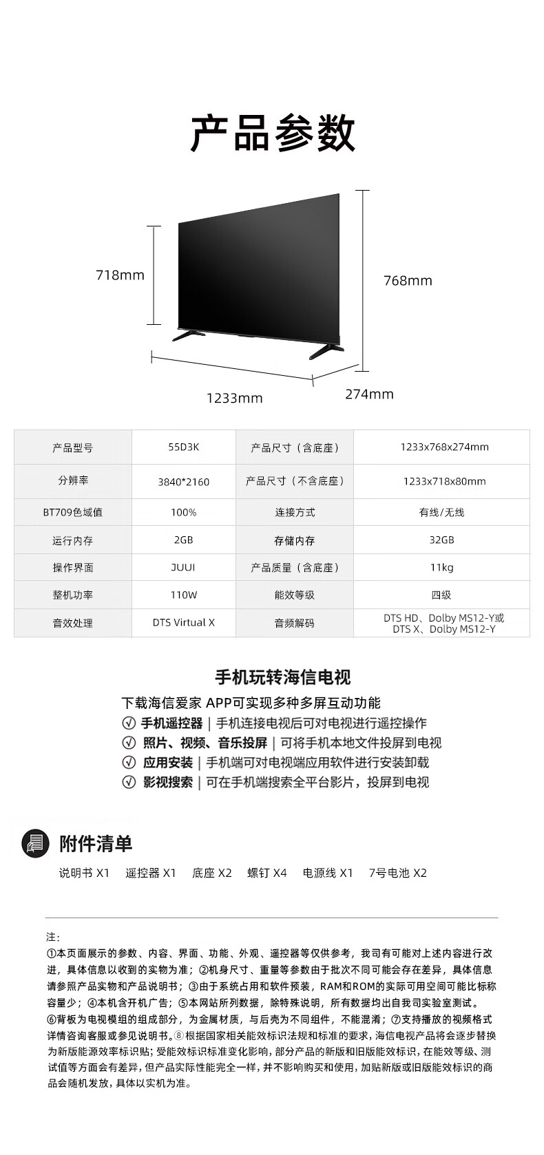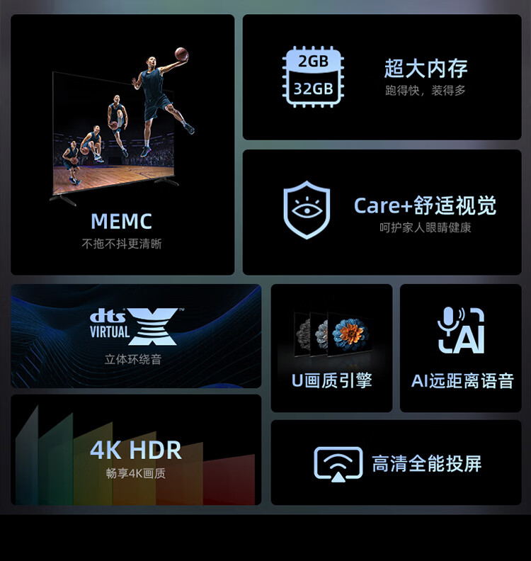海信电视 D3K 55/65英寸 MEMC运动防抖 2+32GB 语音智控 U画质引擎 AI智能内容感知