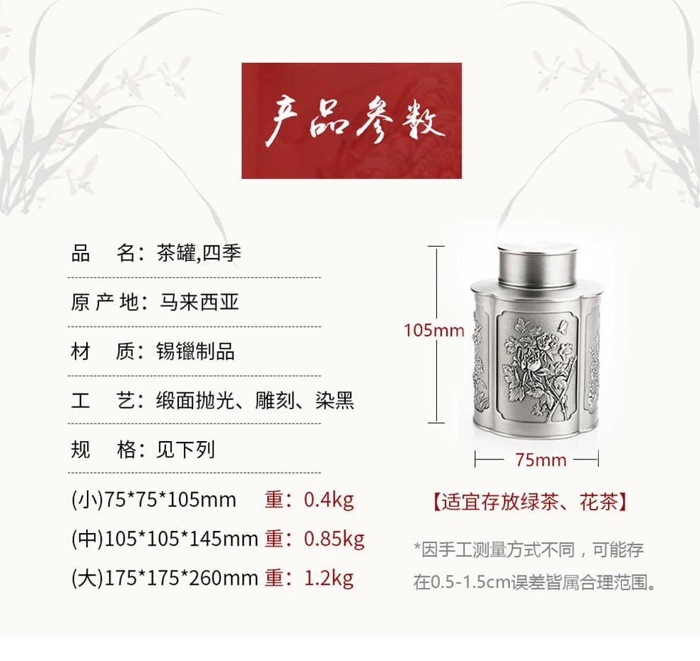 Royal Selangor皇家雪兰莪 四季茶叶罐 锡罐 工艺礼品密封茶叶罐茶具金属密封罐