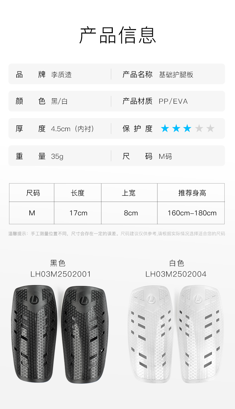 小李子李质造足球训练轻便防撞镂空蜂巢缓震成人足球护腿板青少年