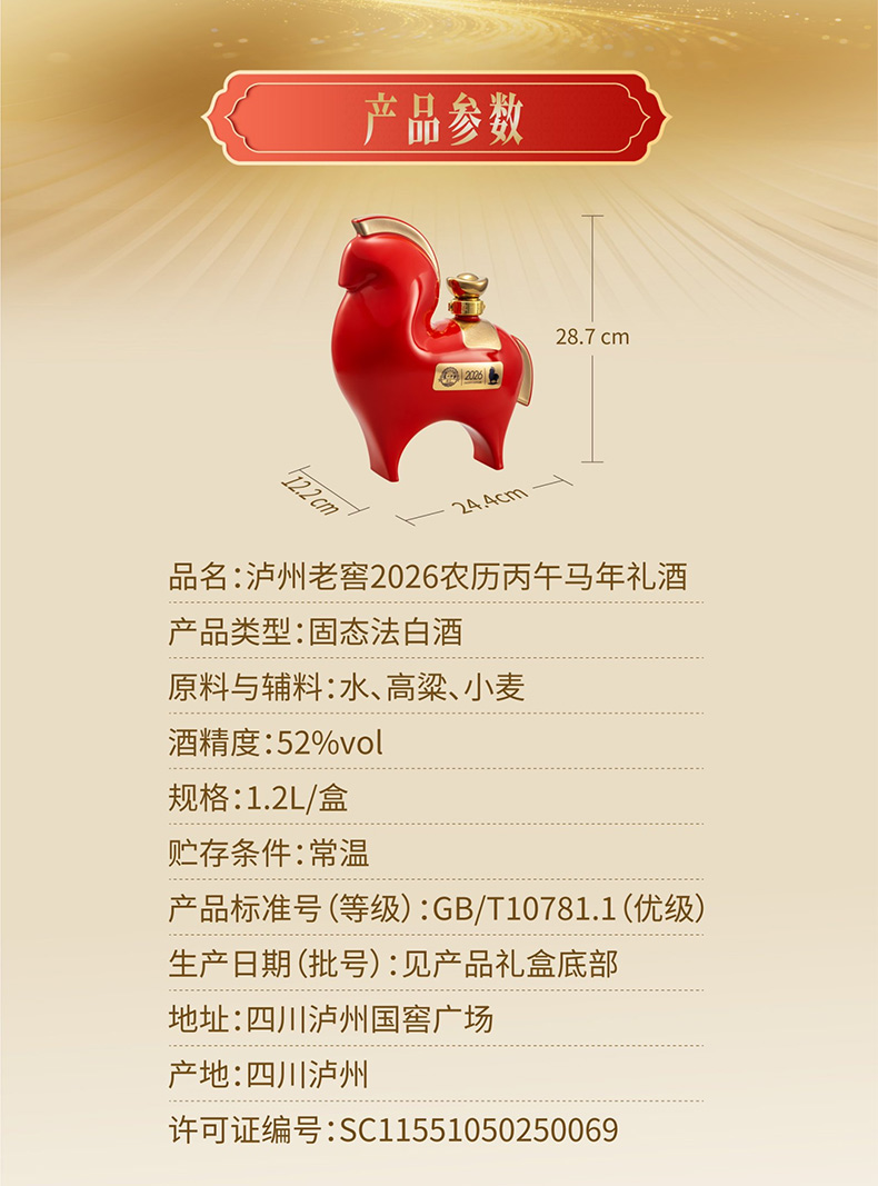 【酒厂直营】52度泸州老窖2026农历丙午马年礼酒/惟尊1.2L 泸州老窖官方旗舰店