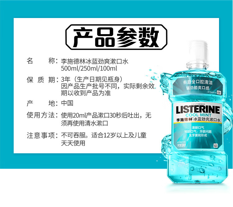 李施德林冰蓝劲爽漱口水 500ml/瓶