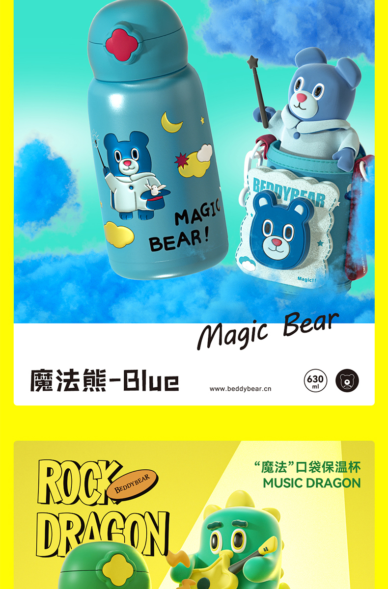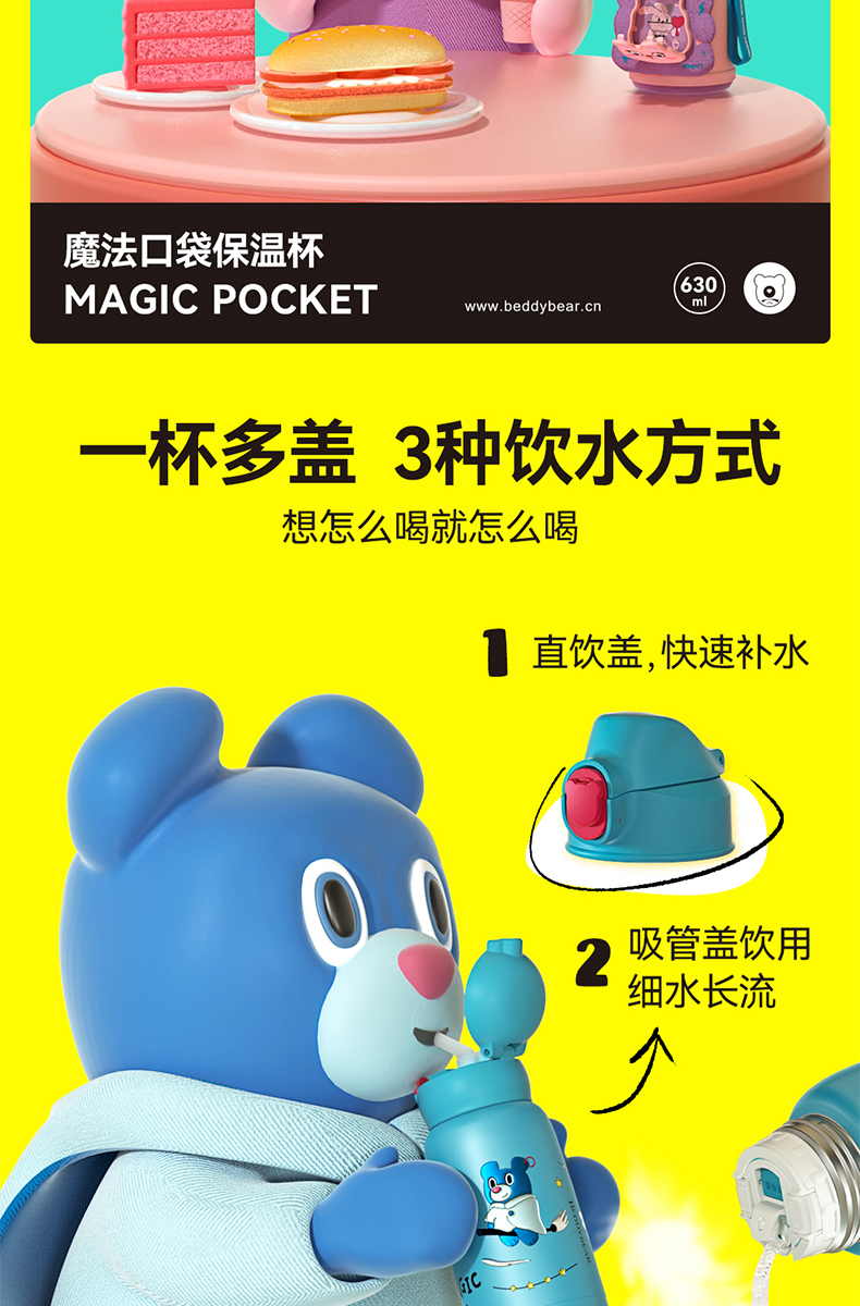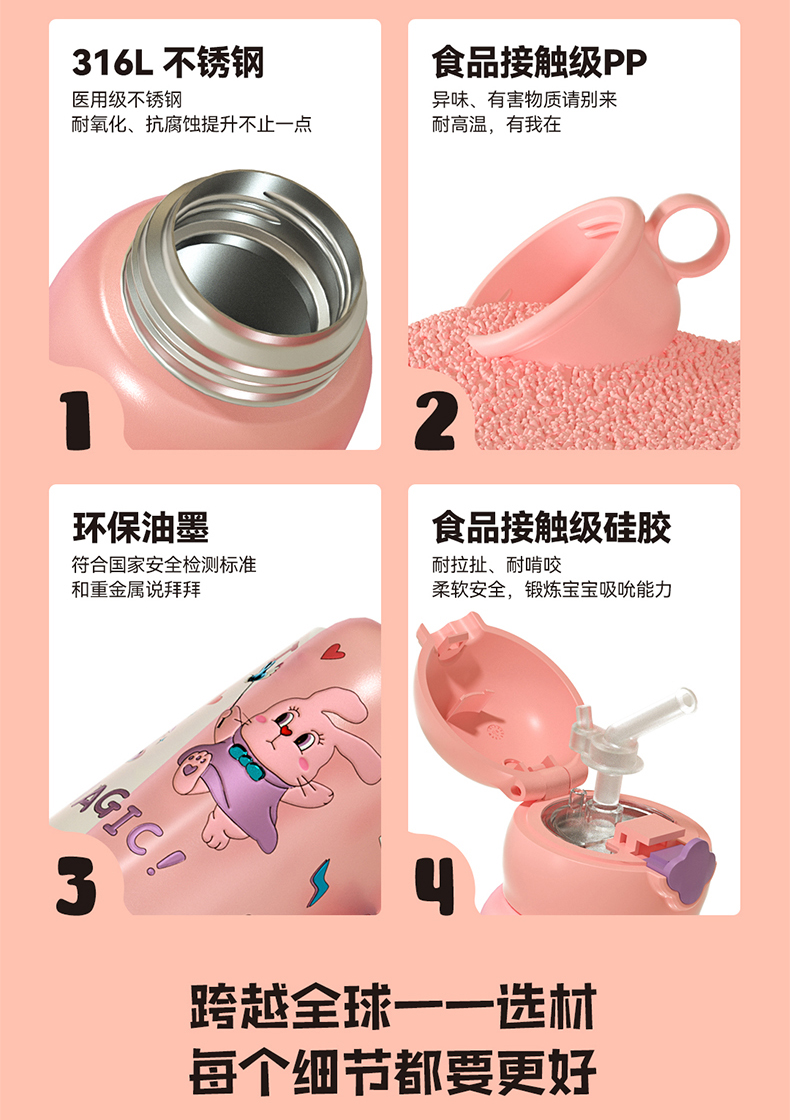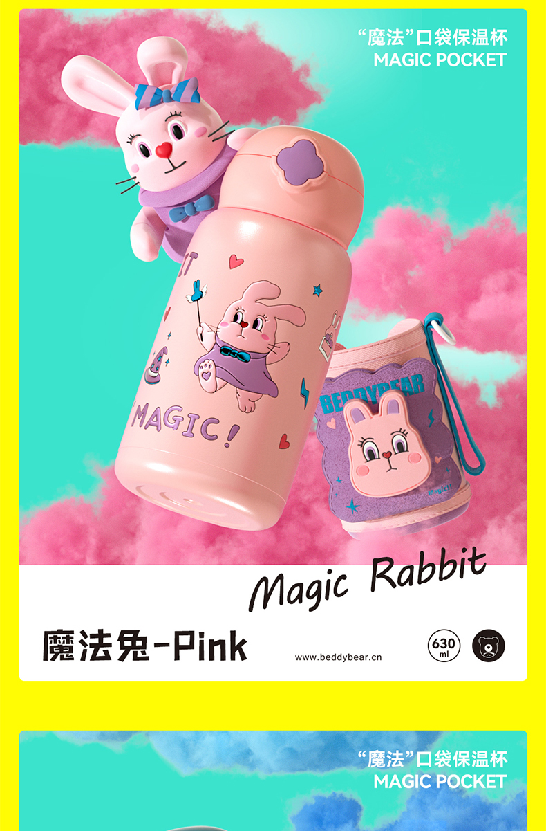 杯具熊儿童杯魔法系列RT105-630 魔法口袋童保温杯带吸管316食品级女水杯水壶