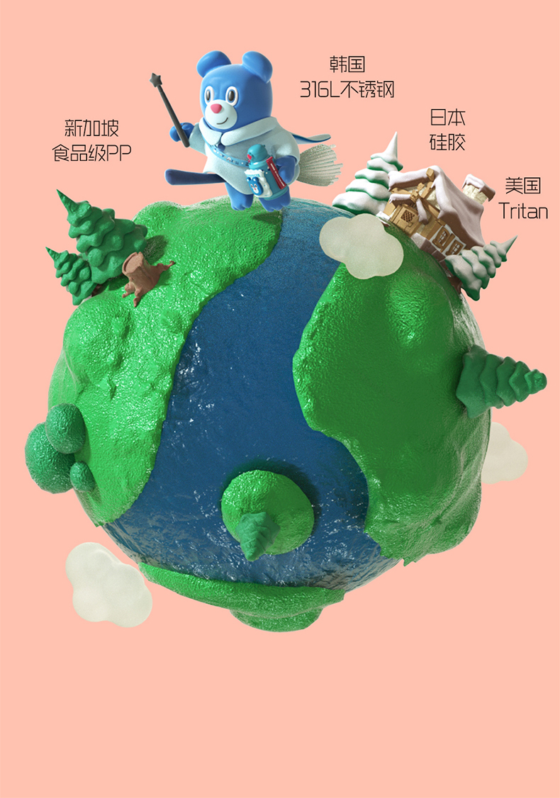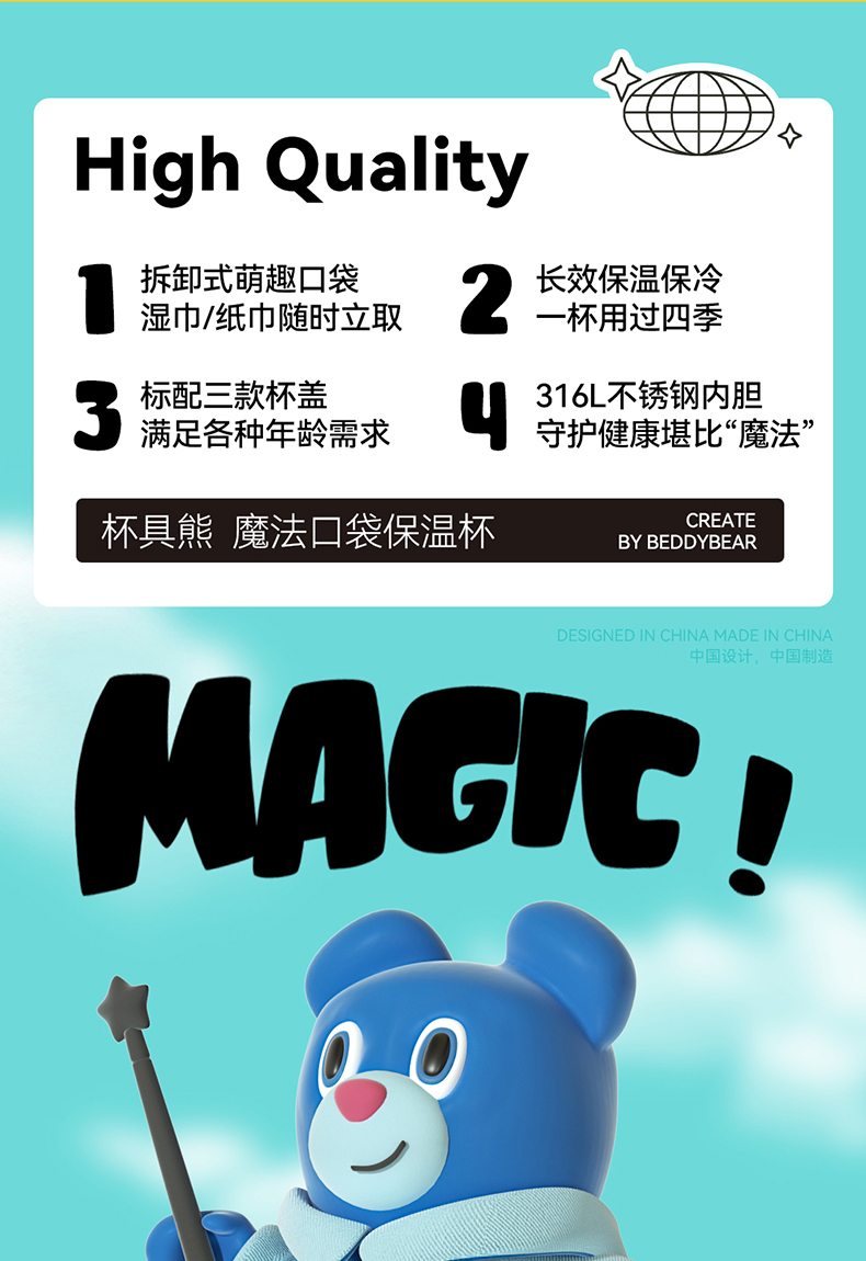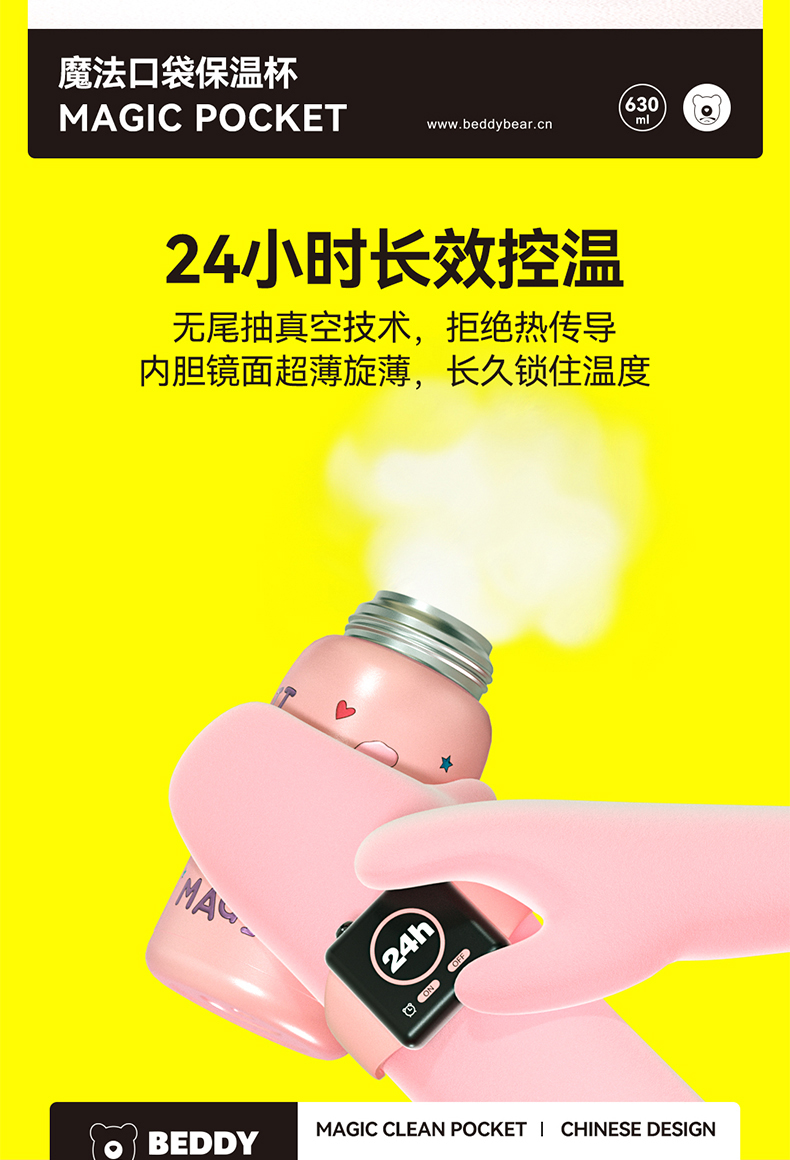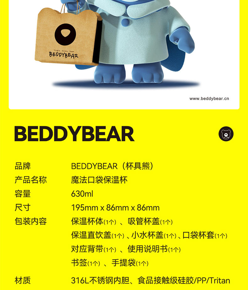 杯具熊儿童杯魔法系列RT105-630 魔法口袋童保温杯带吸管316食品级女水杯水壶