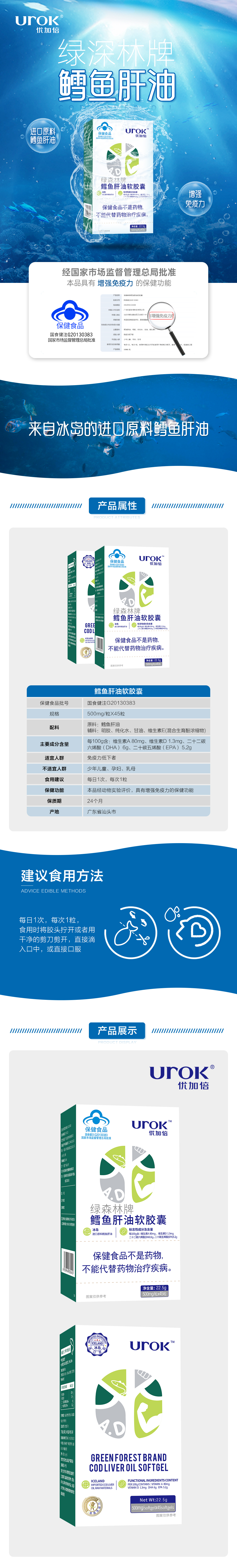 优加倍绿森林牌鳕鱼肝油软胶囊45粒