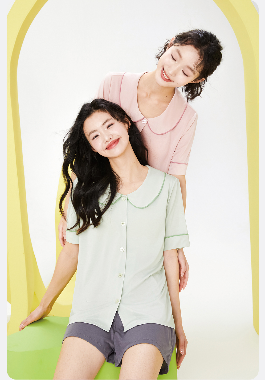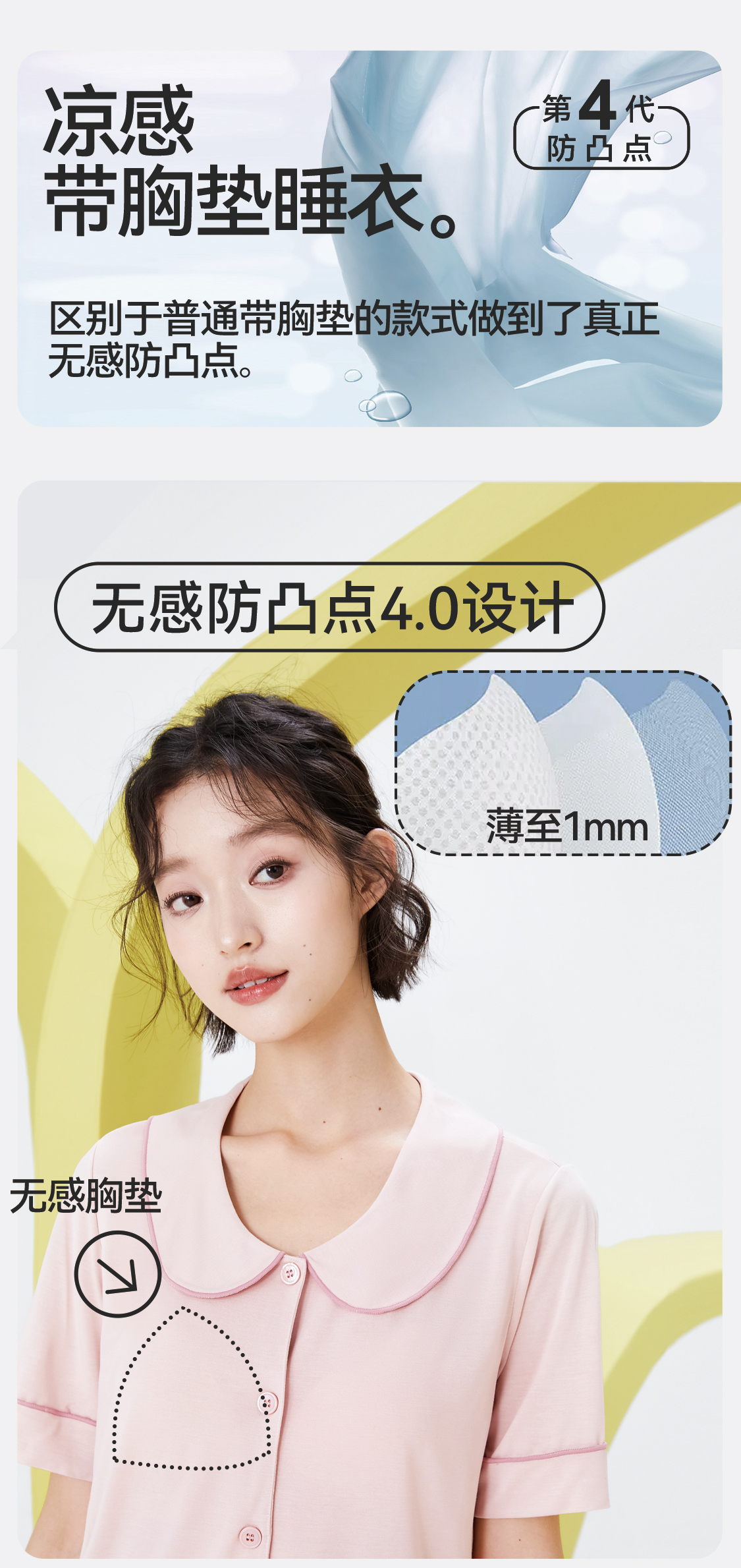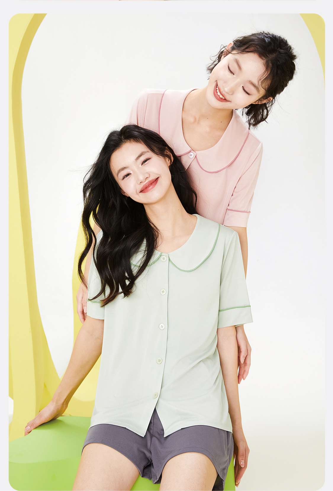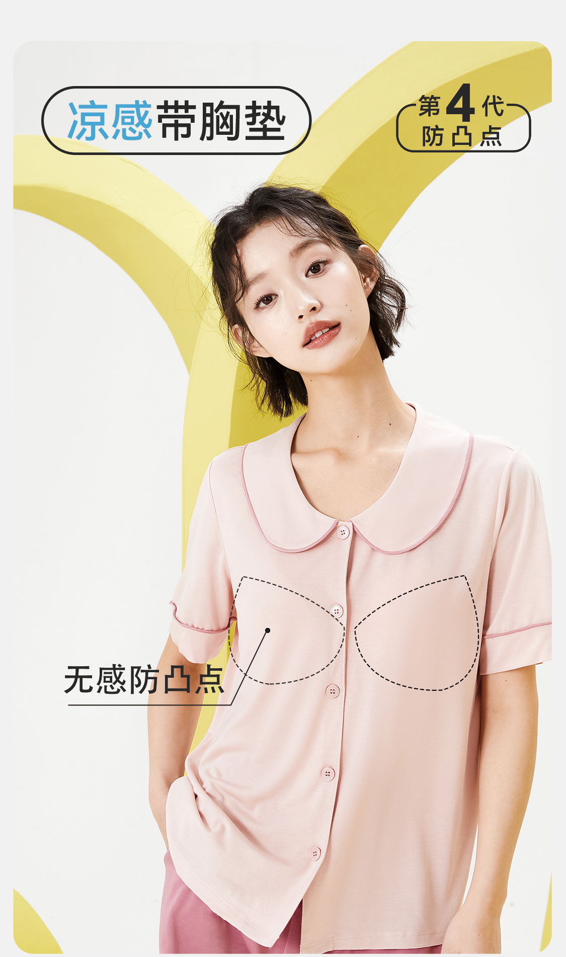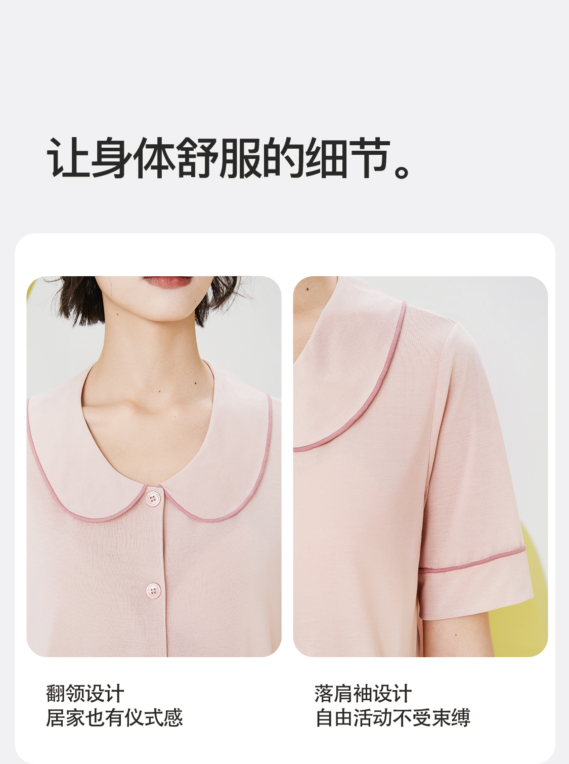内茵丨翻领开衫带胸垫家居服套装