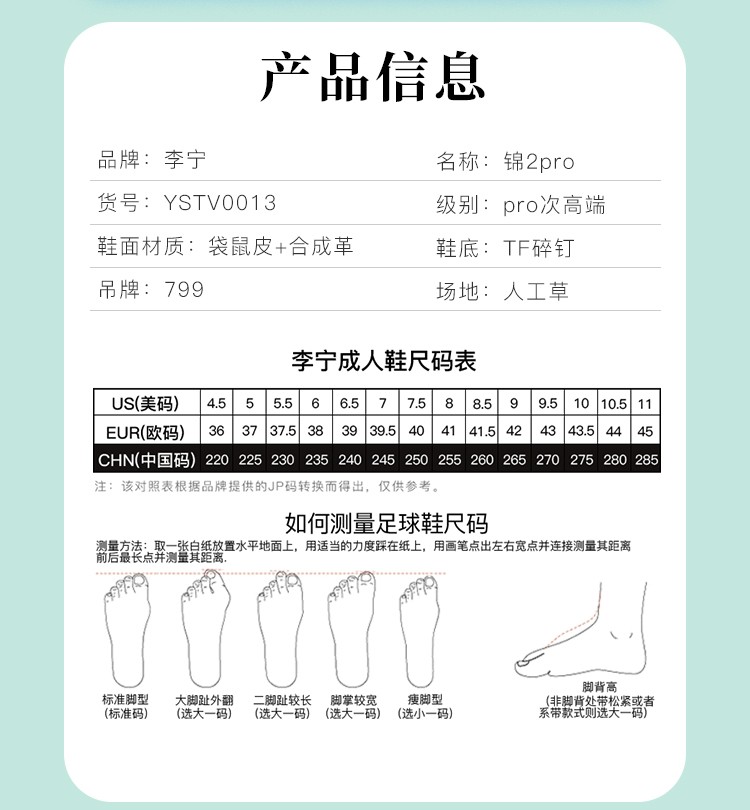 小李子李宁合作款锦2 PRO次顶低帮TF碎钉䨻云碳板足球鞋成人男款 商品图2