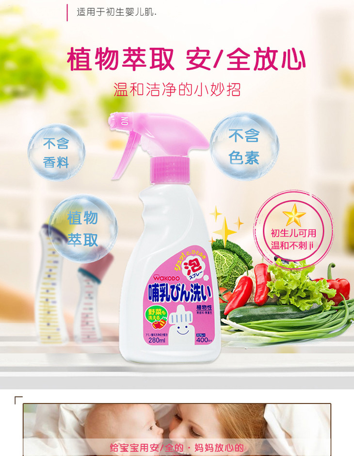 超推荐!日本本土wakodo和光堂奶瓶果蔬清洁剂清洗液弱酸性植物(135230)