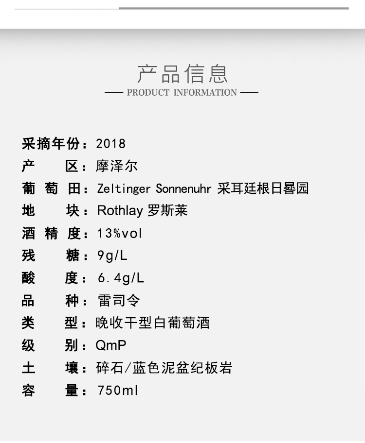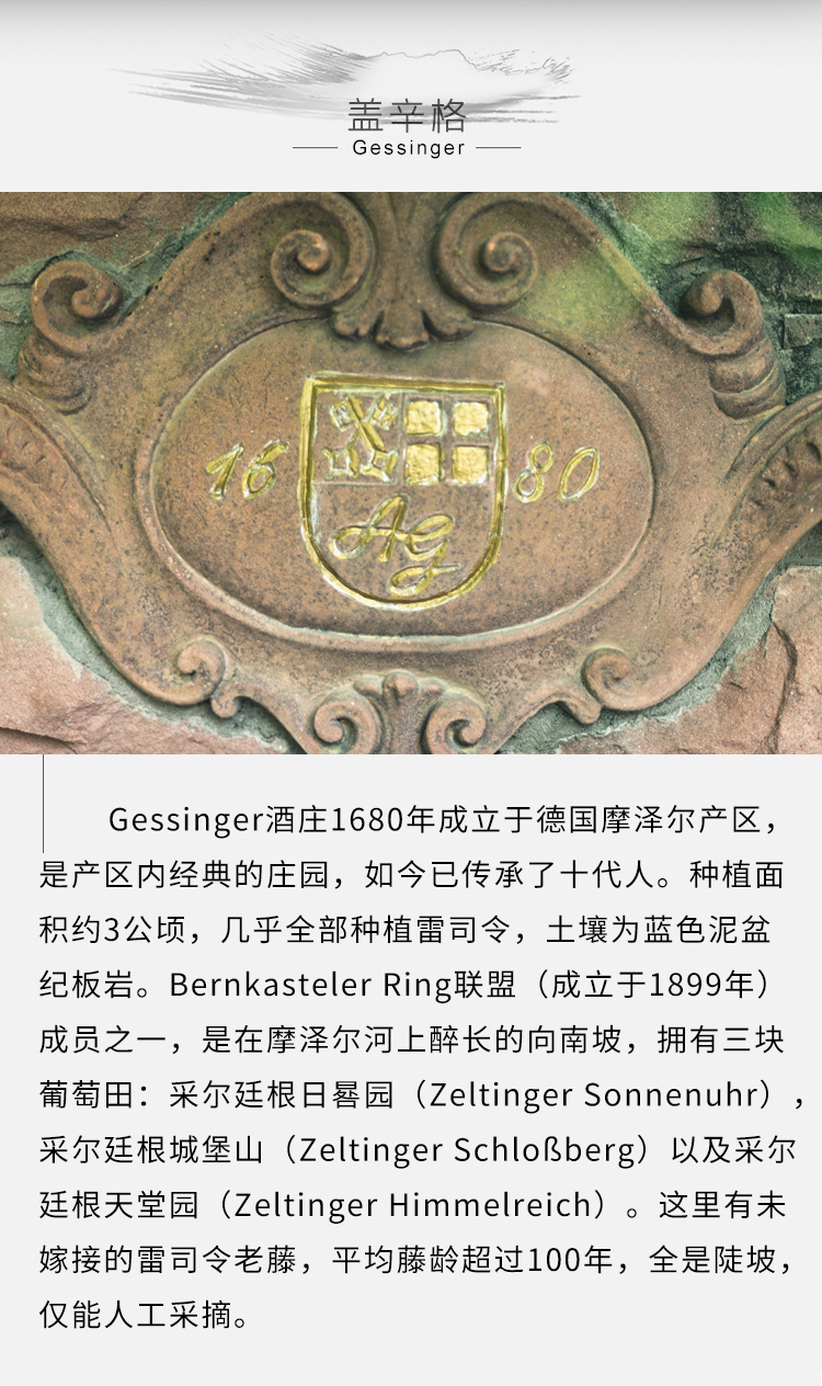 盖辛格采尔廷根日晷园雷司令GG 干型白葡萄酒2018