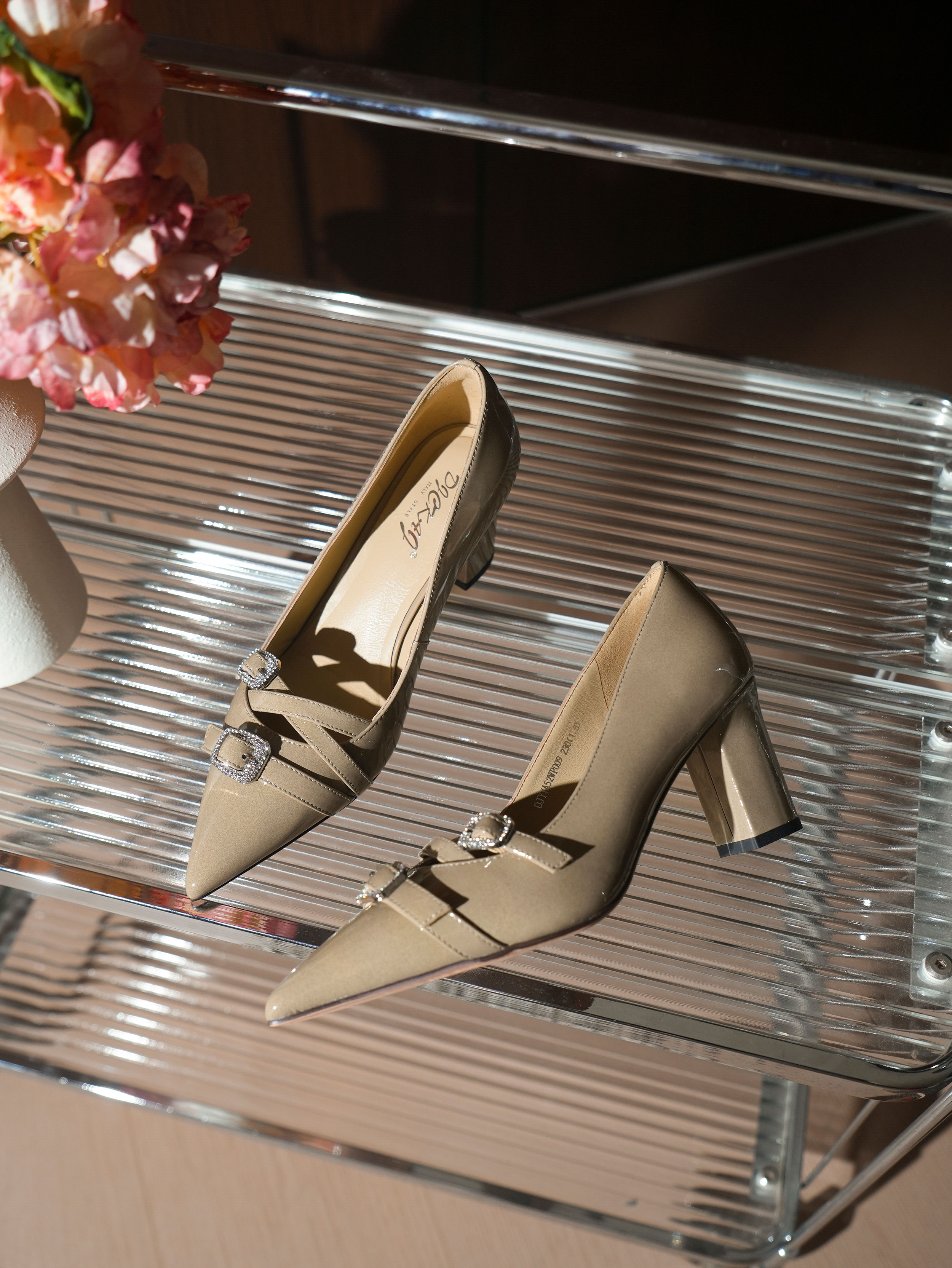 豪麟名鞋迪嘉女鞋皮鞋牛移膜革DJYYA52WP009卡其色