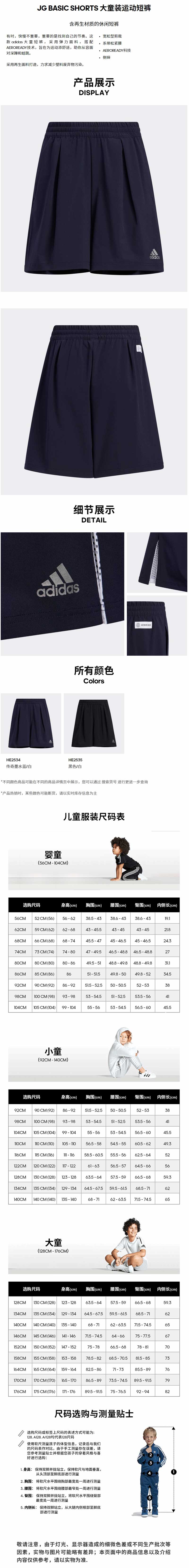 小阿迪大童装夏季新款运动短裤HE2535