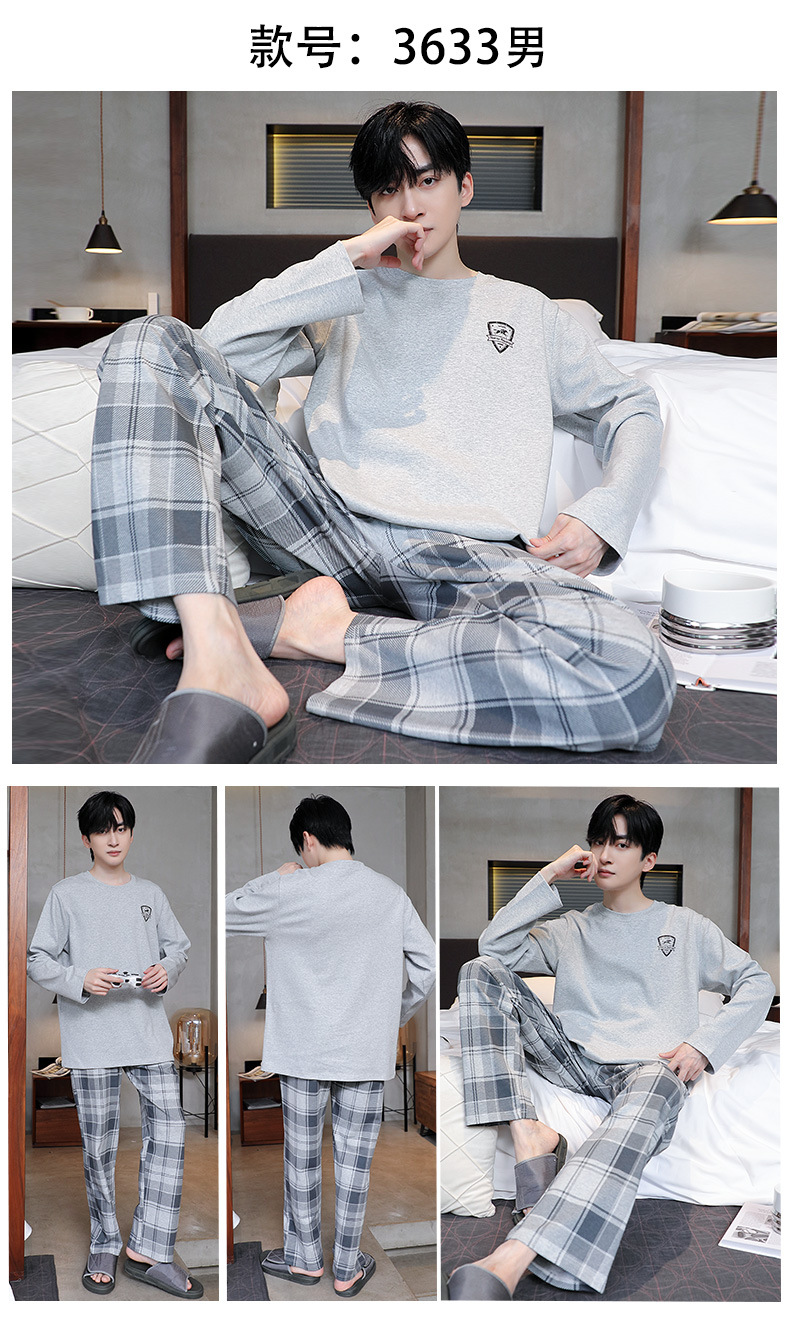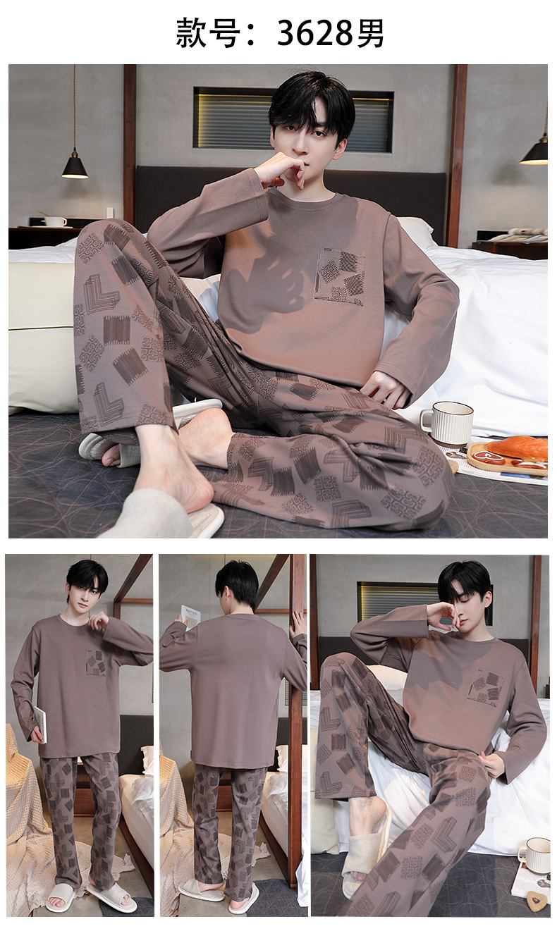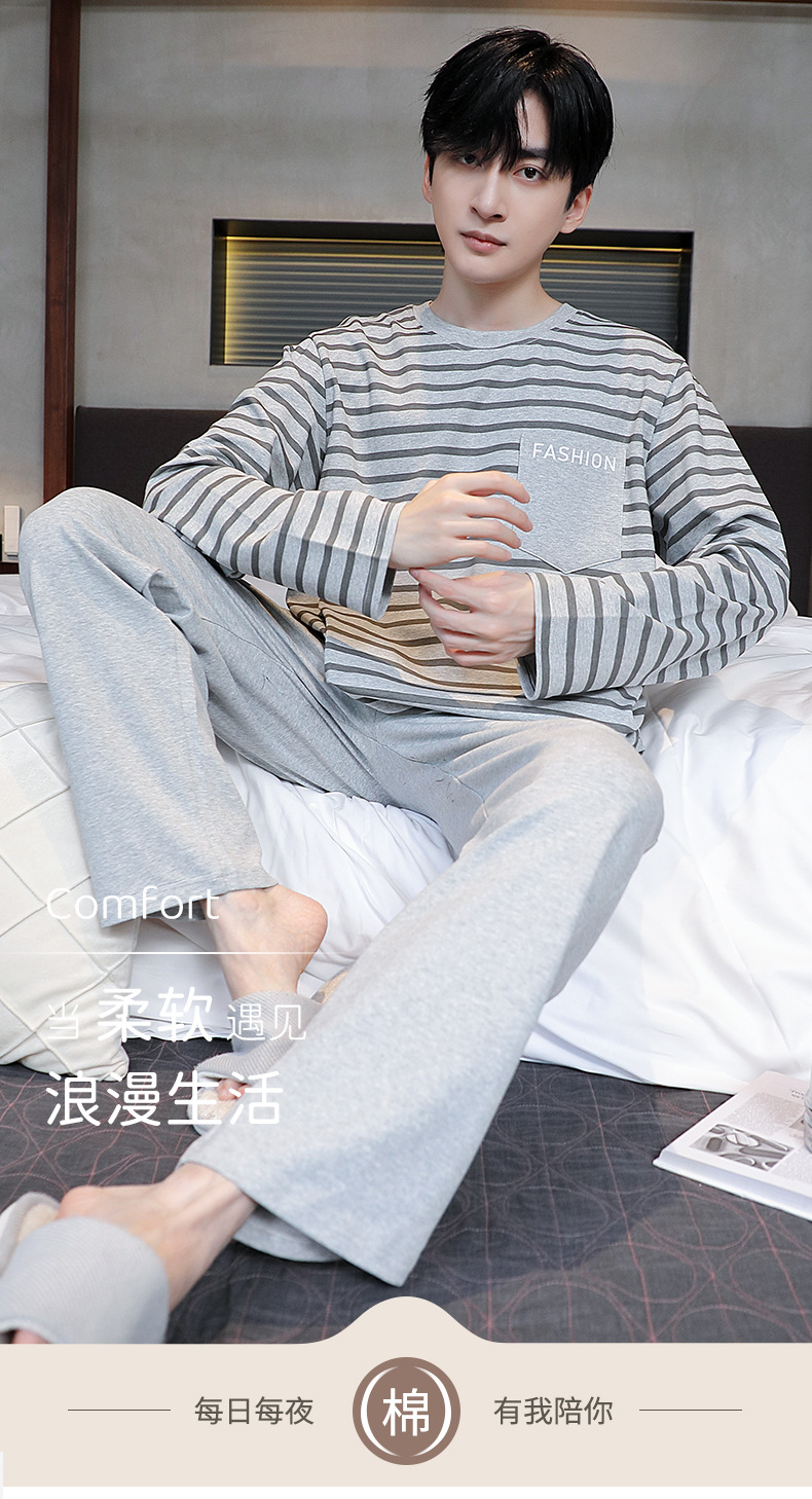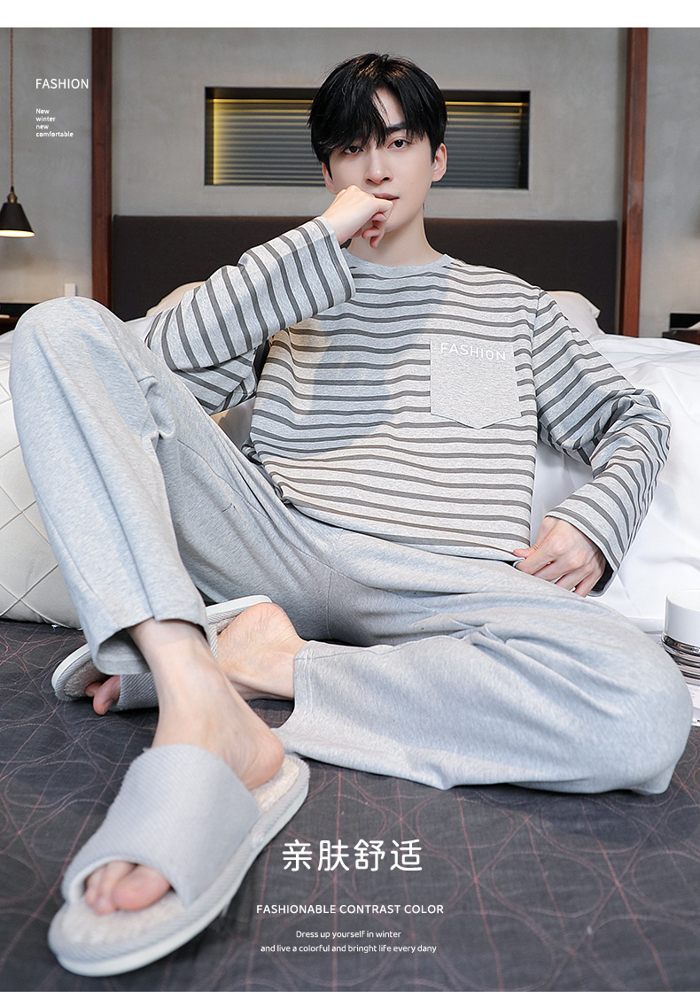 圆领套头睡衣男士秋冬季棉质长袖春秋款男款可外穿韩版休闲宽松家居服套装