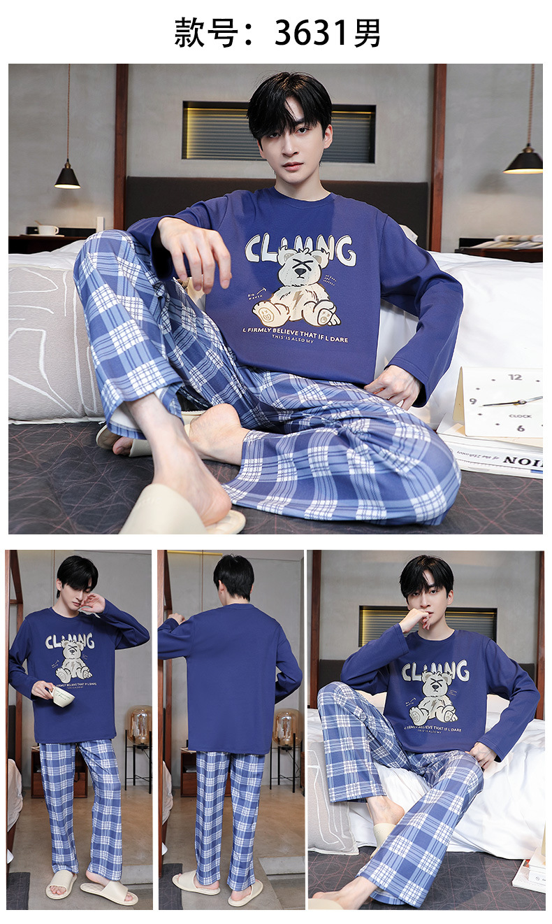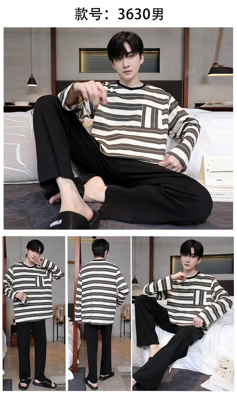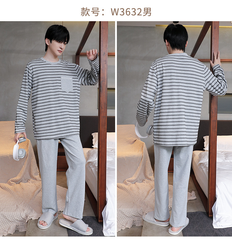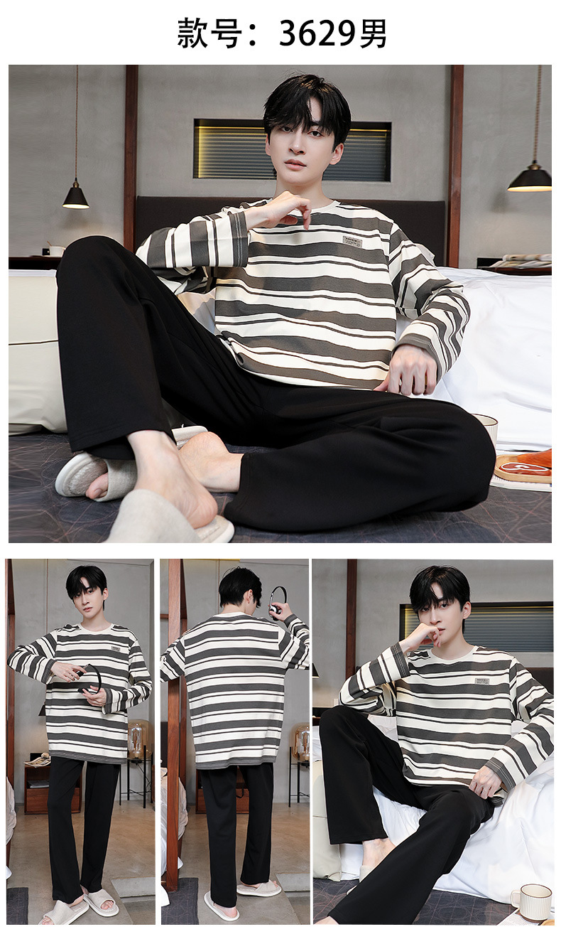 圆领套头睡衣男士秋冬季棉质长袖春秋款男款可外穿韩版休闲宽松家居服套装