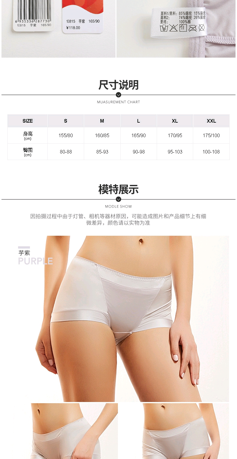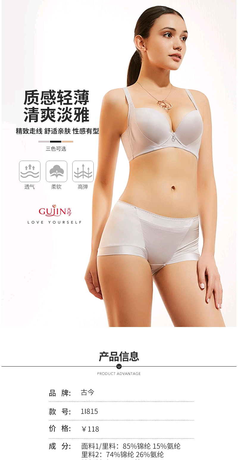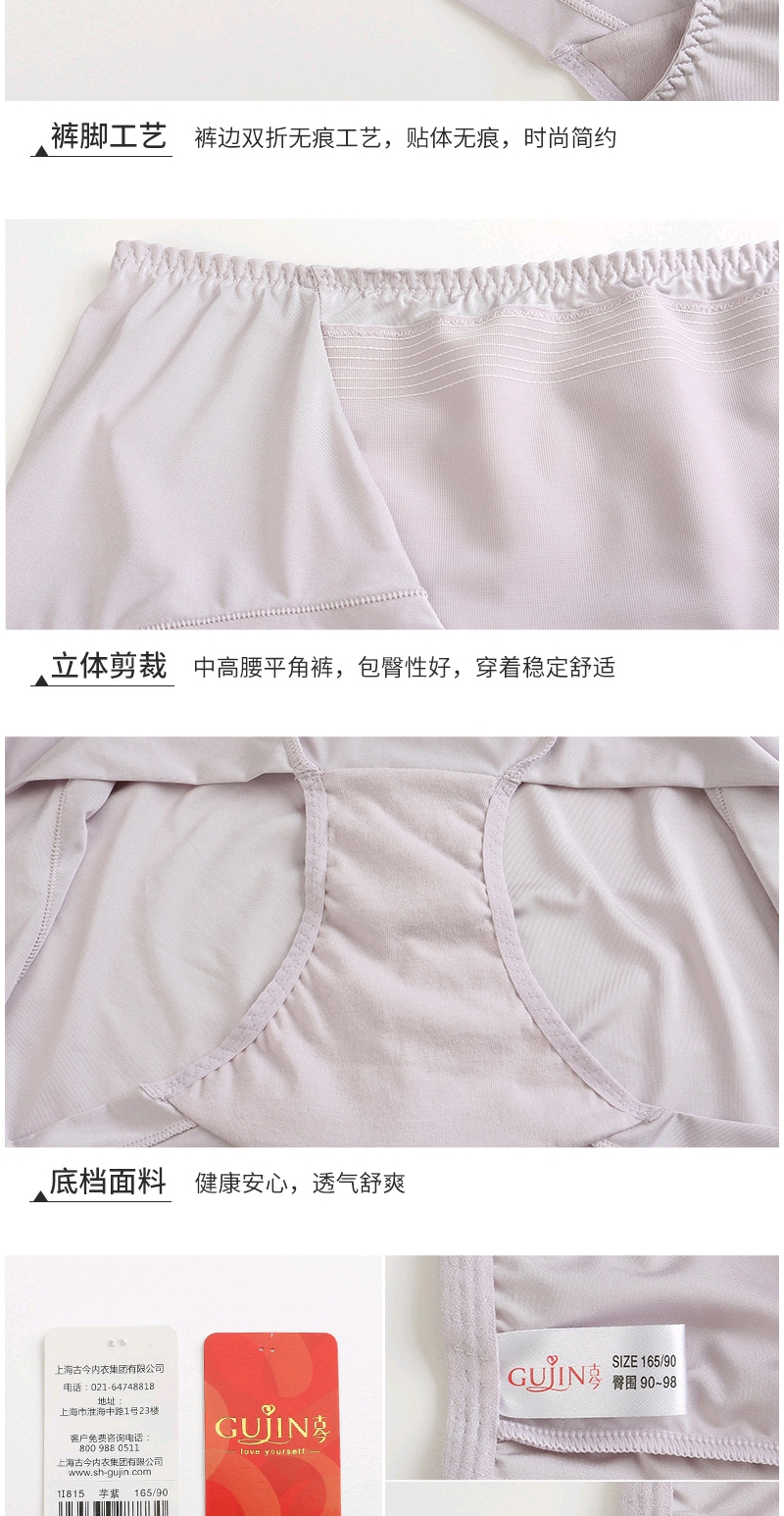 古今中高腰无痕弹性光感面料平角裤女士舒适性感包臀1I815