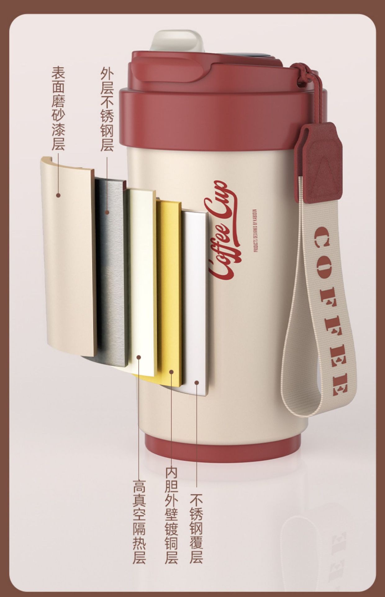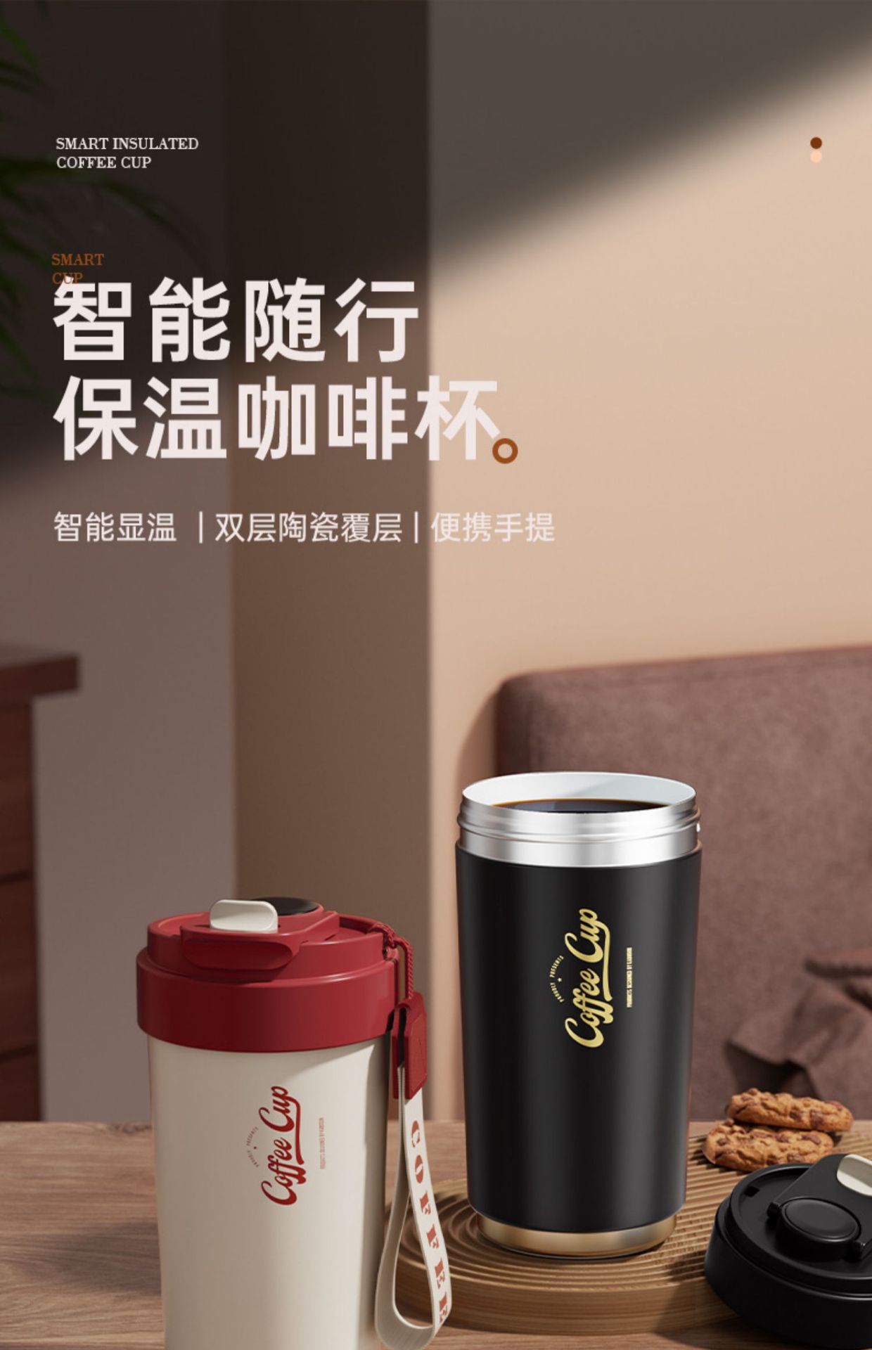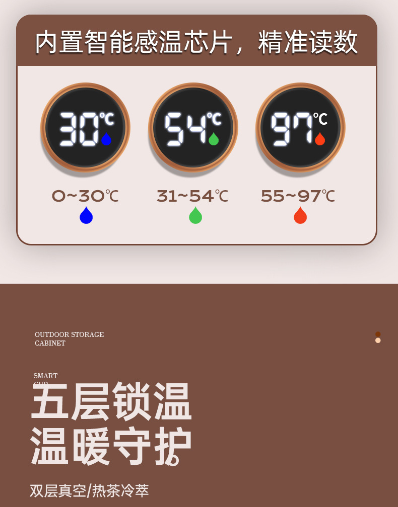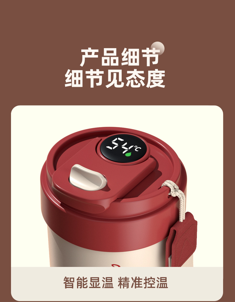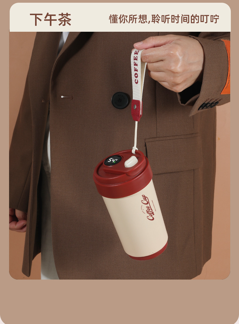「四色可选!智能测温款」陶瓷内胆保温杯智能测温户外便携随行咖啡杯保温保冷餐饮用具