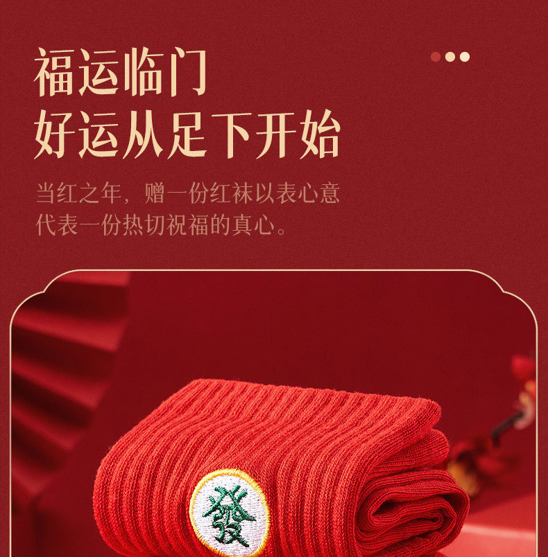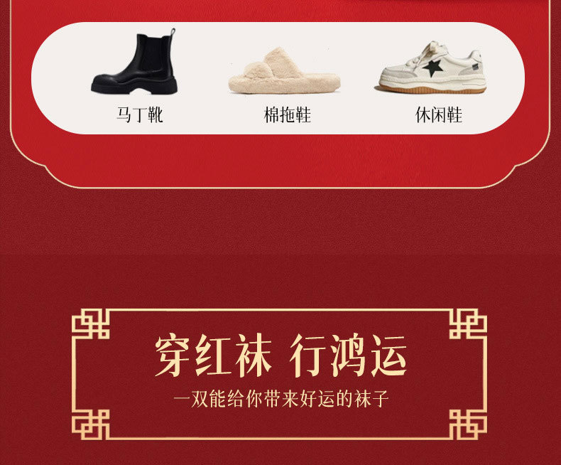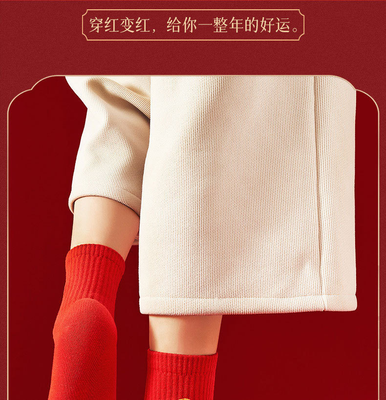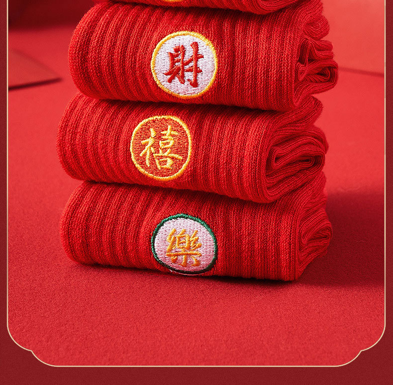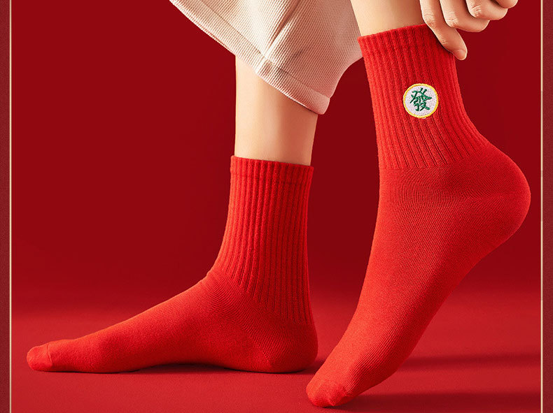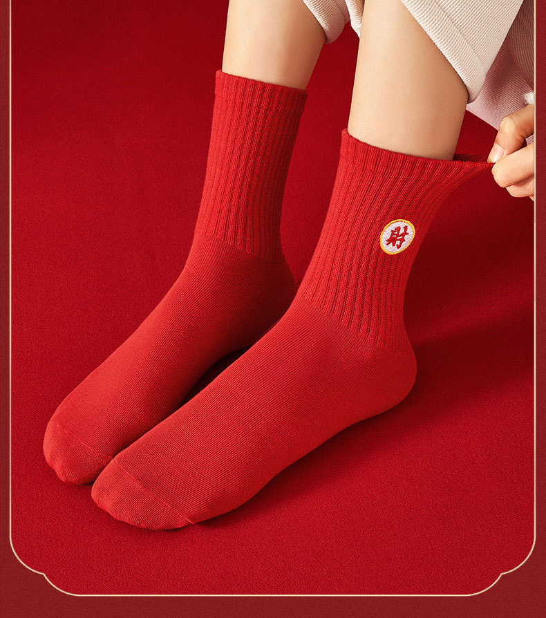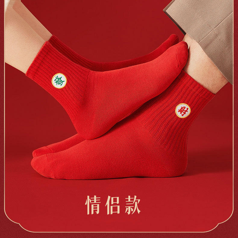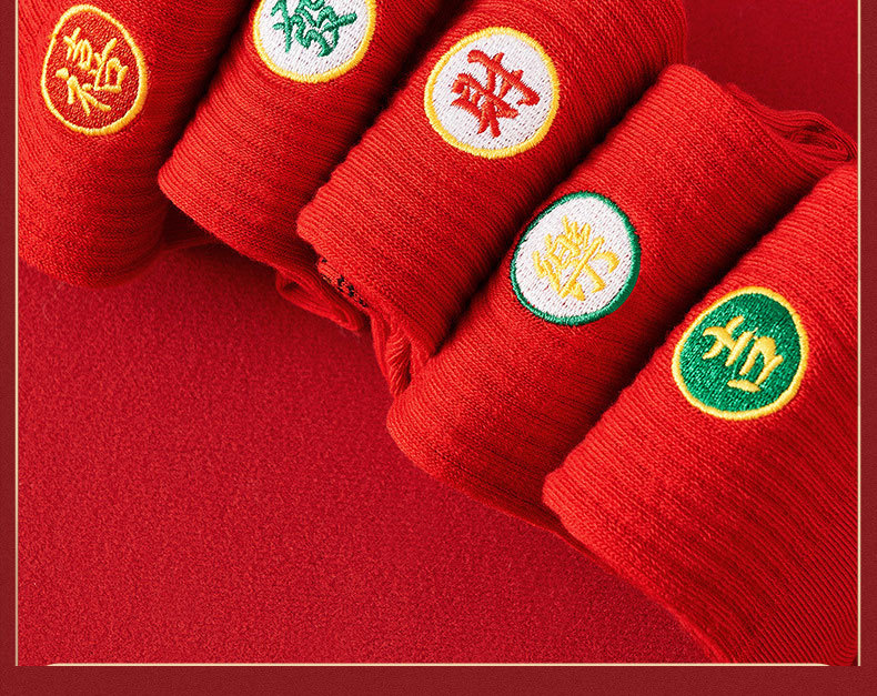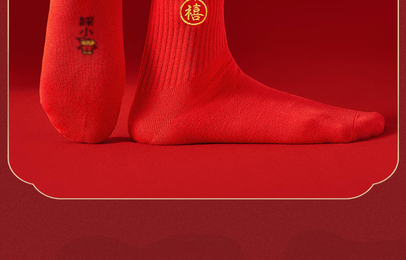 马年!【5双礼盒装 纯棉+刺绣情侣袜】本命年刺绣红袜子 精梳棉防臭袜 结婚大红色新年中筒袜