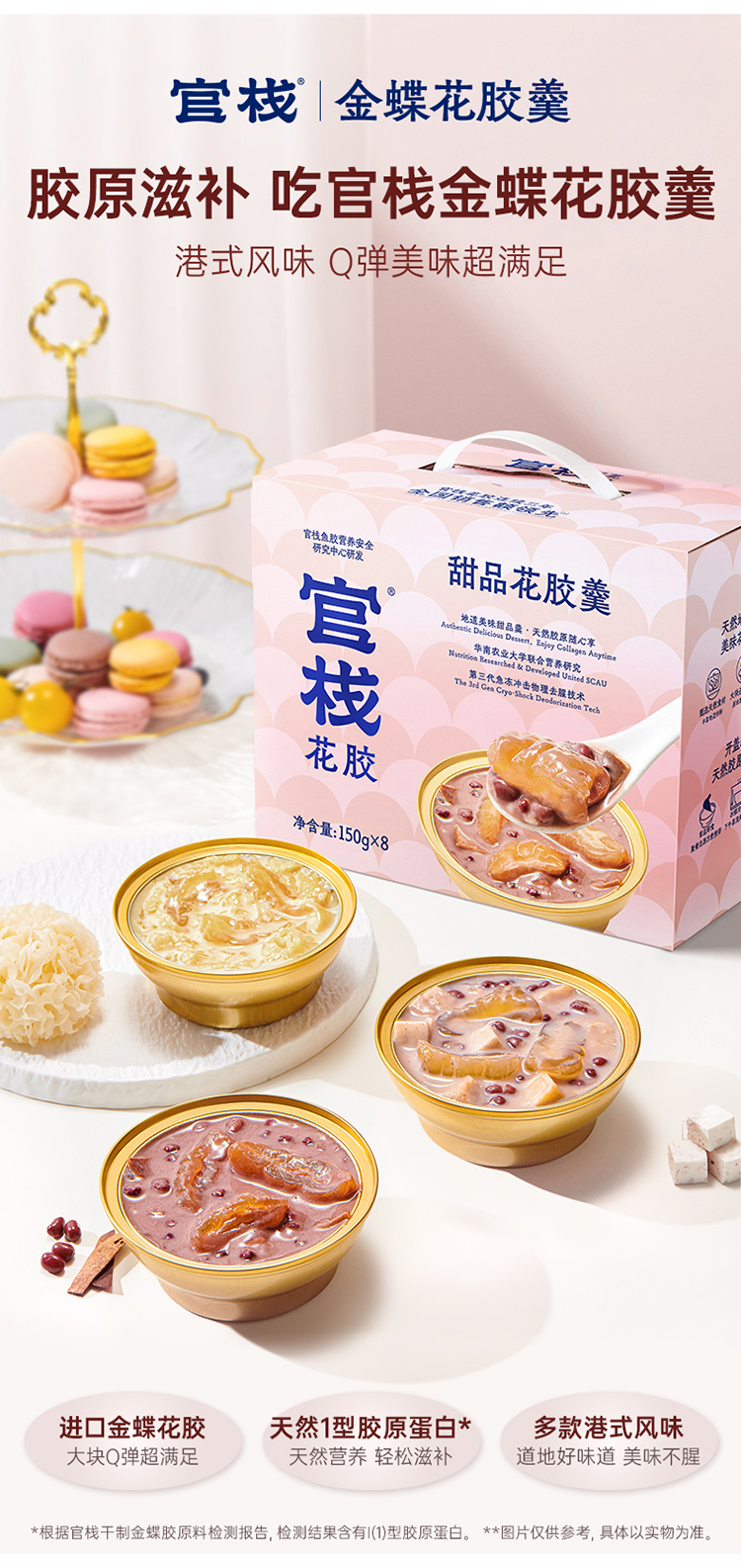 【腾讯专享 | 官栈花胶羹礼盒】官栈即食花胶羹 港式风味膳食营养新选择-3口味8碗装(150g)
