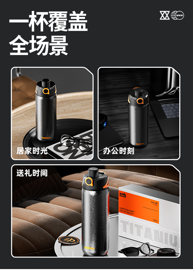 bablov纯钛保温杯男士水杯吸管杯礼盒杯子送朋友钛杯中秋国庆礼物