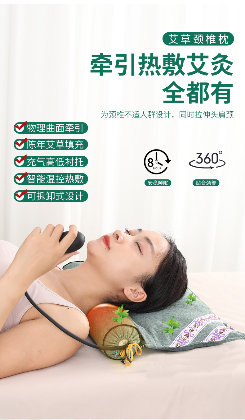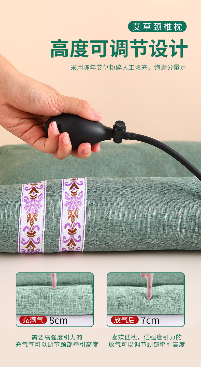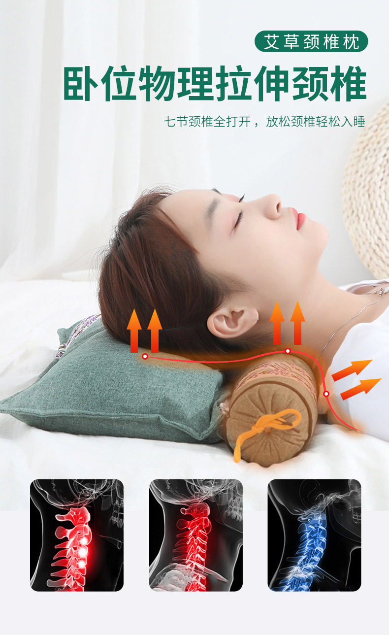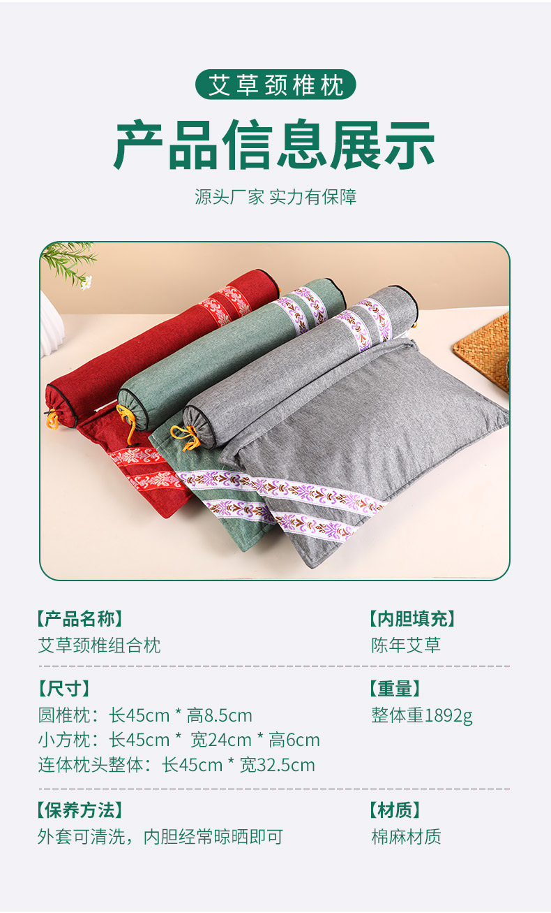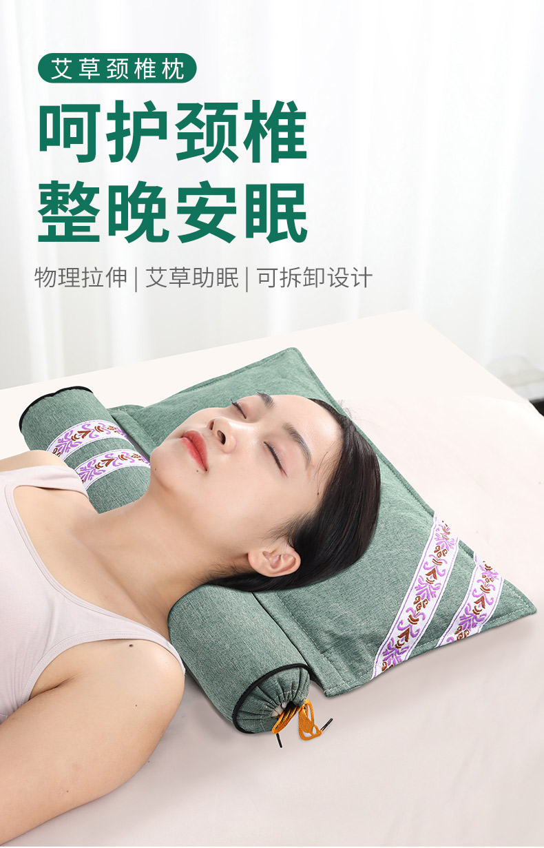 艾草连体颈椎枕多功能护颈枕睡眠家用纯艾组合枕艾草热敷艾灸枕头