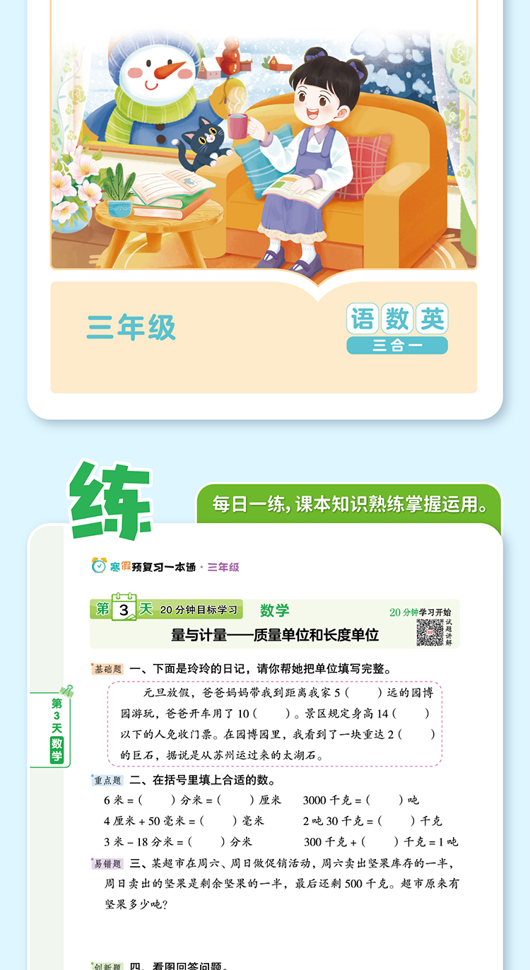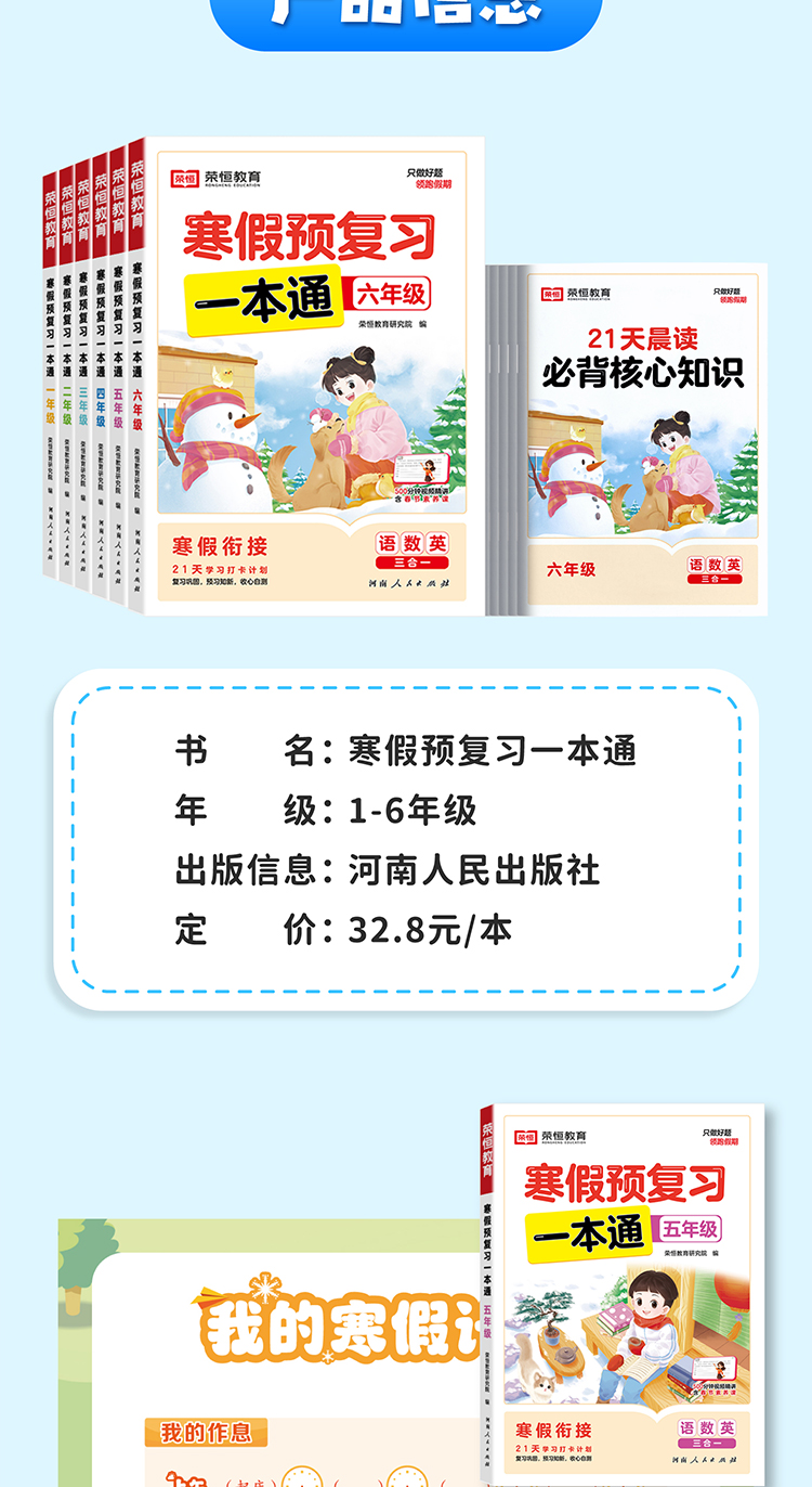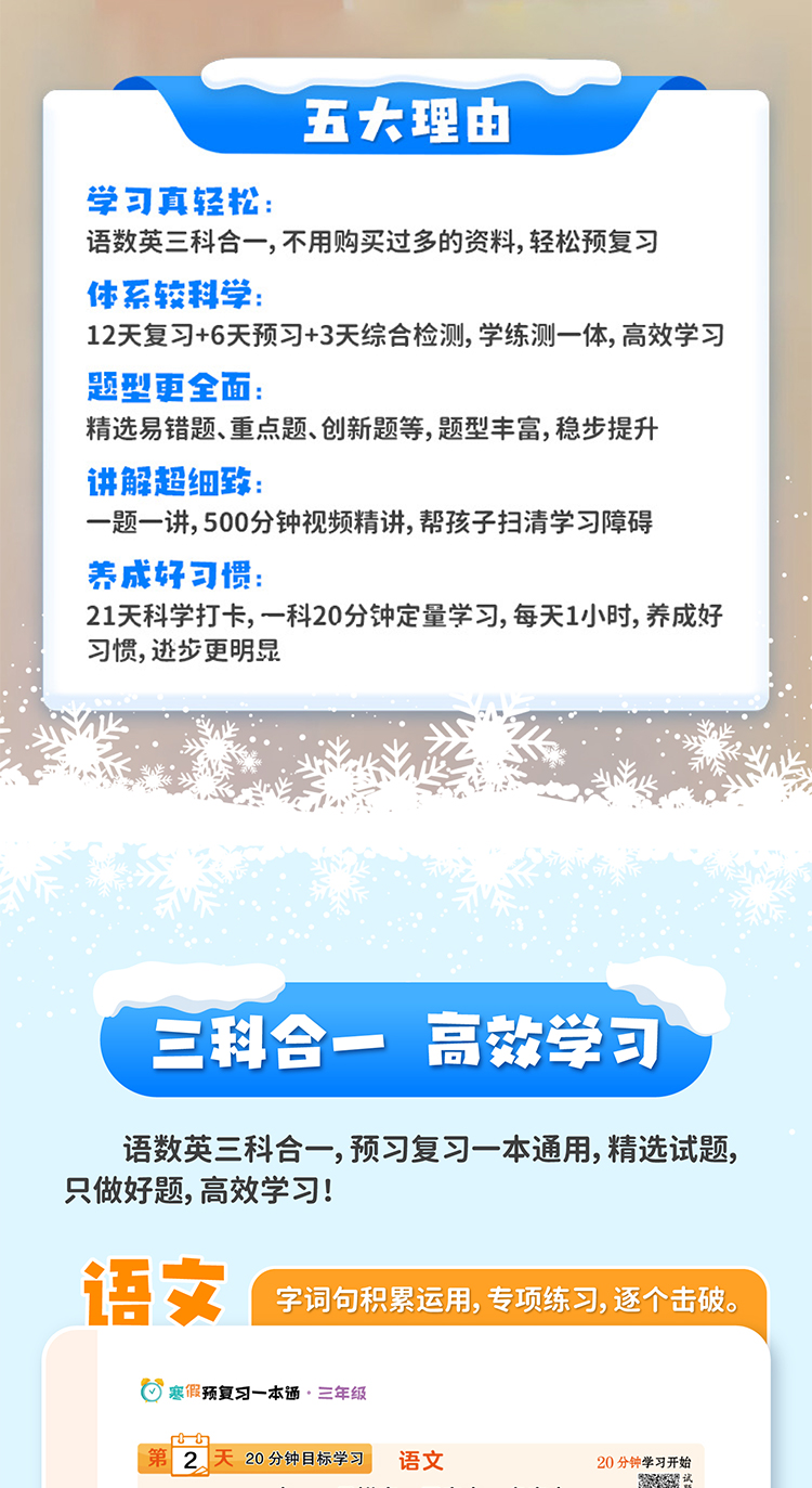2025版 寒假预复习一本通 语文数学英语 2年级 三科合一高效学习