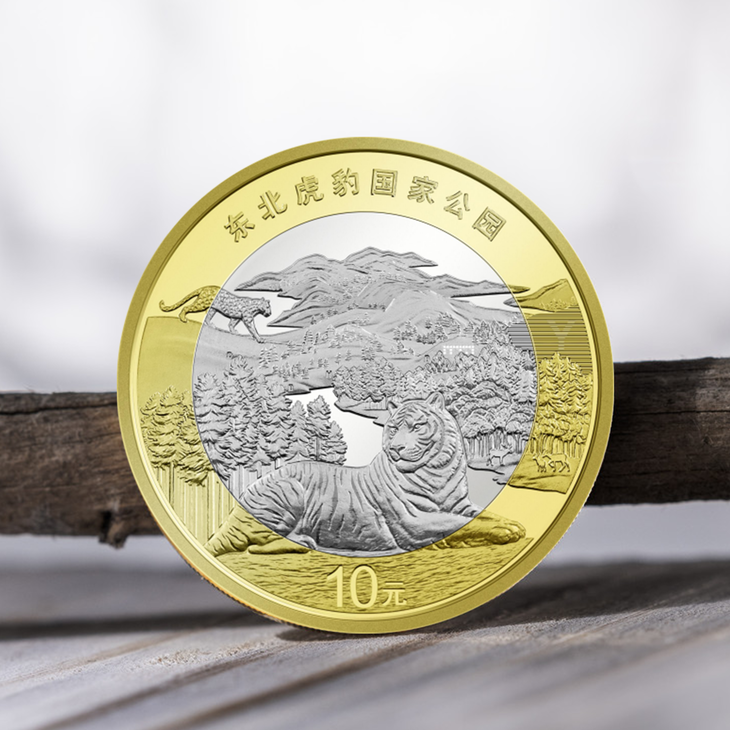 3、东北虎豹国家公园纪念币,是中国人民银行定于2024年8月27日发行的一枚普通纪念币。该纪念币面额为10元,直径为27毫米,材质为双色铜合金,发行数量为6000万枚。