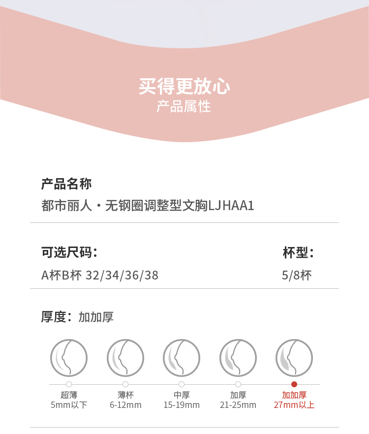 都市丽人AB杯内衣棉感锁边A:中厚B:薄3/4杯文胸三排扣树脂胶圈LB21A1