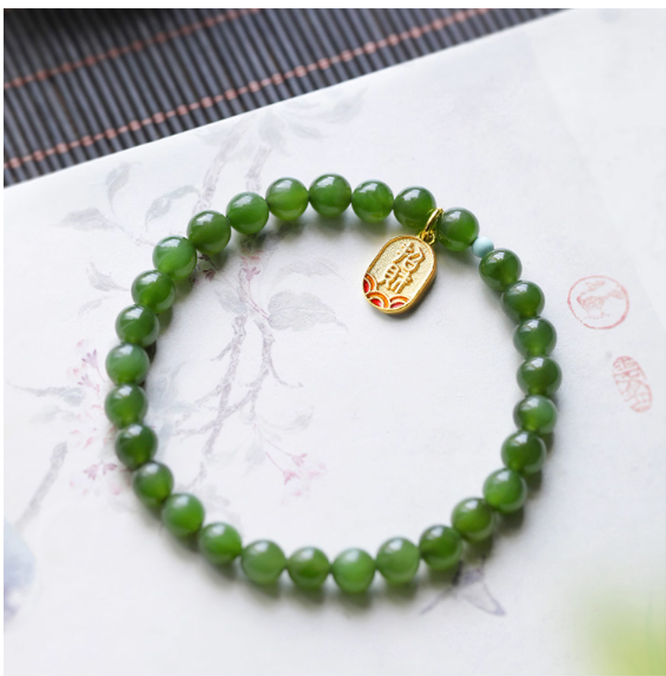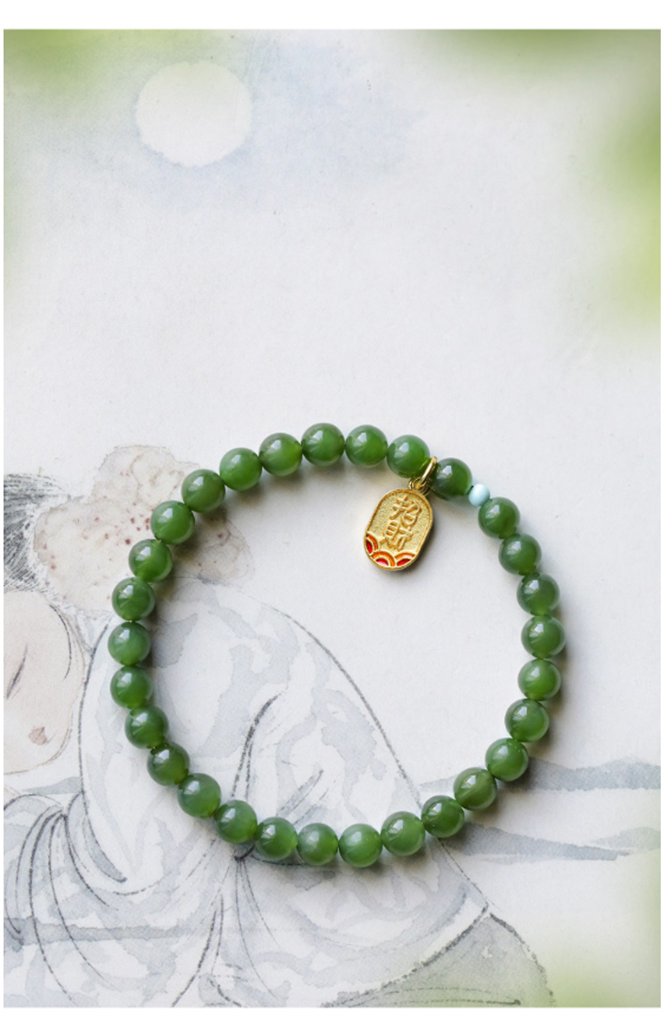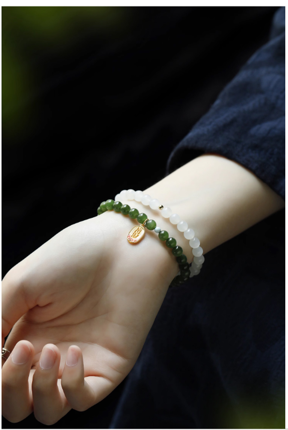 苹果绿碧玉女士手串(6mm)颗颗精选 青翠淡雅