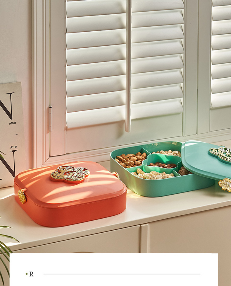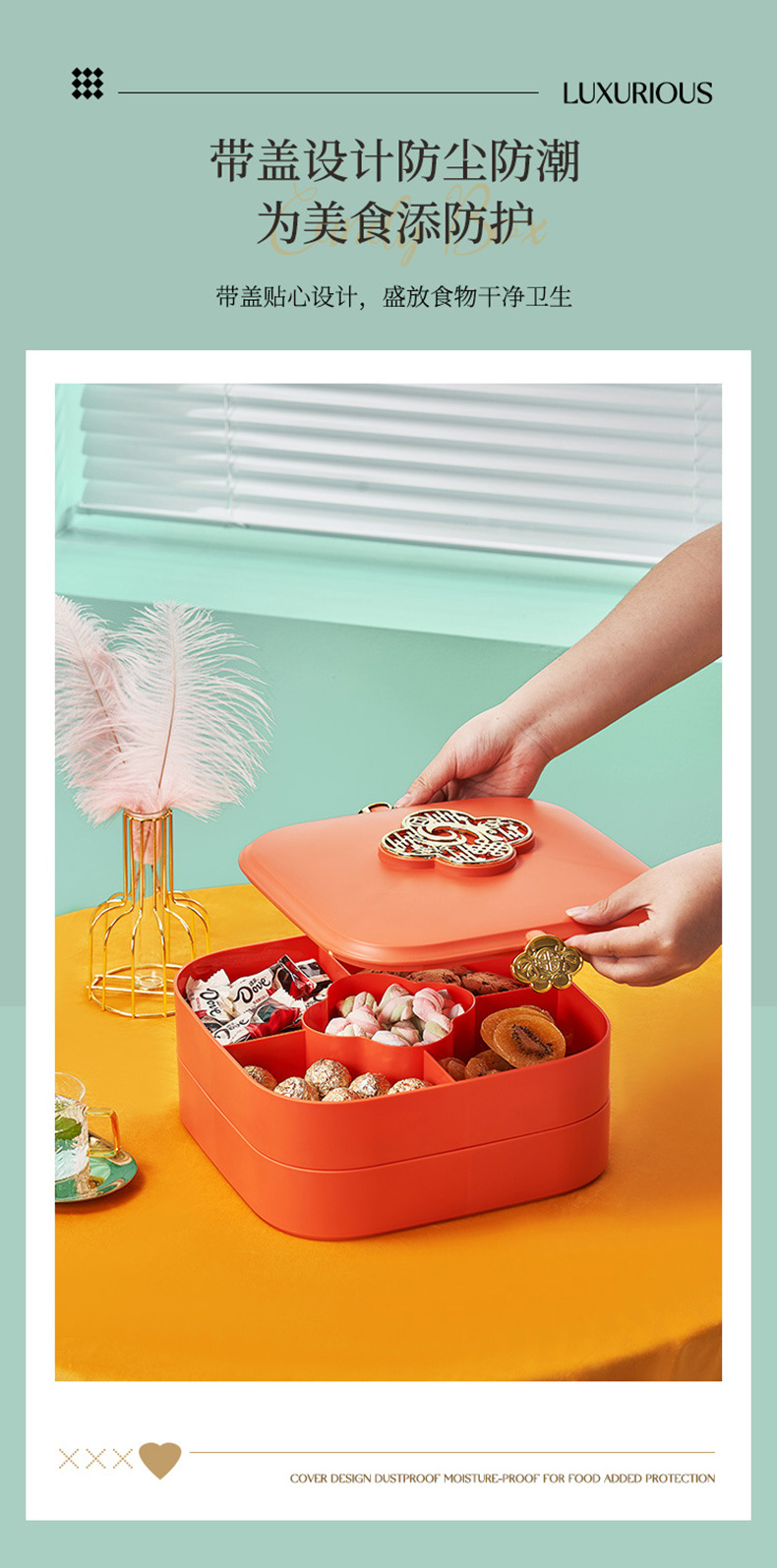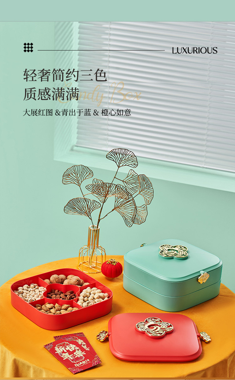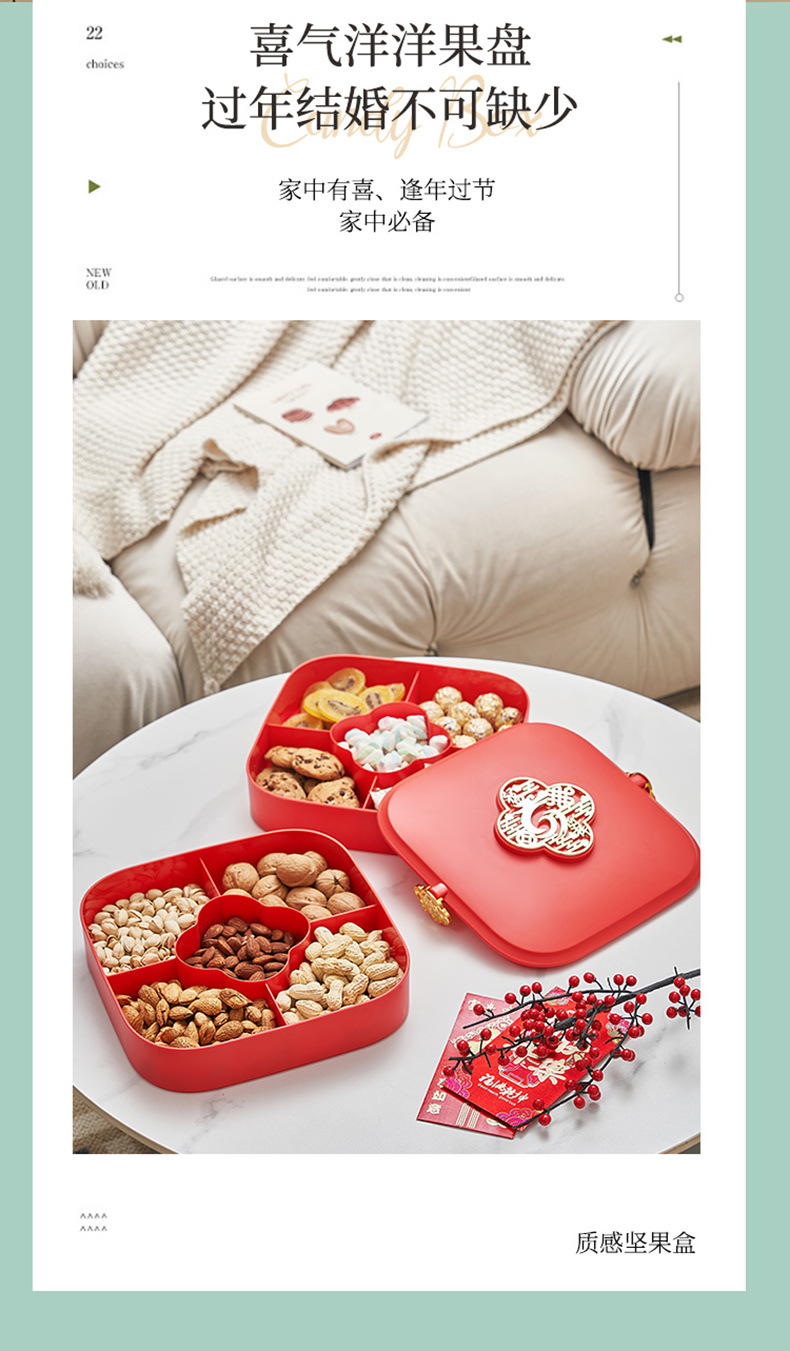 【新春风味;分格收纳】中国红单层果盘糖果盒,细腻的设计搭配实用的分格带盖子,防尘防潮,干果坚果尽在你手中;喜庆零食令人垂涎欲滴;为你带来满满的温馨与欢乐!