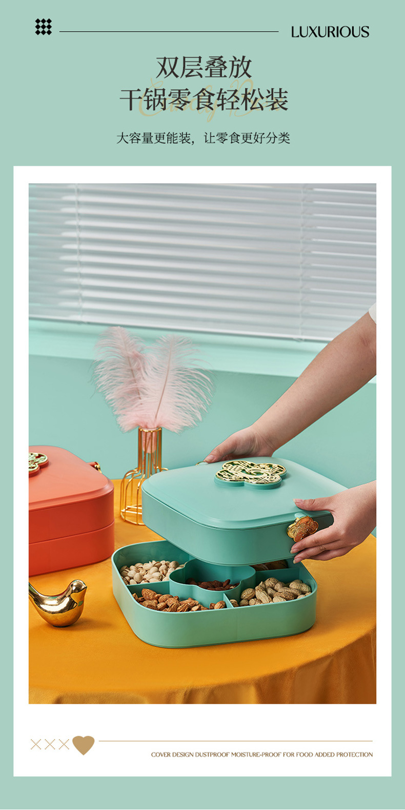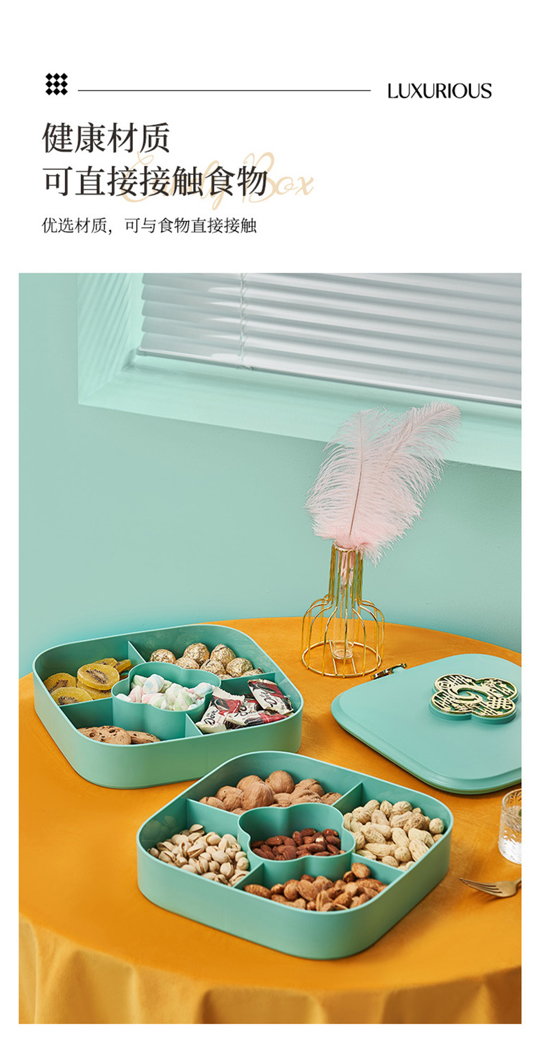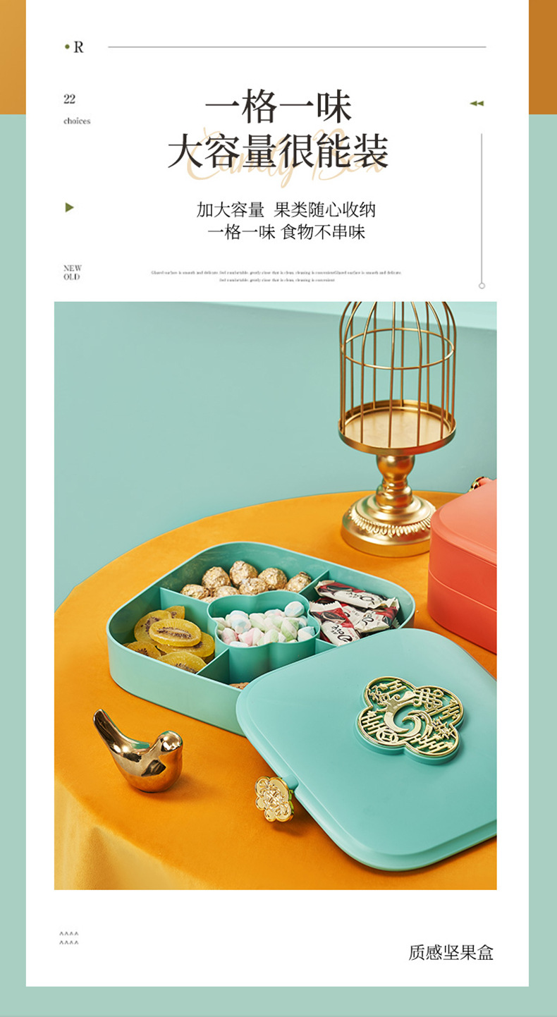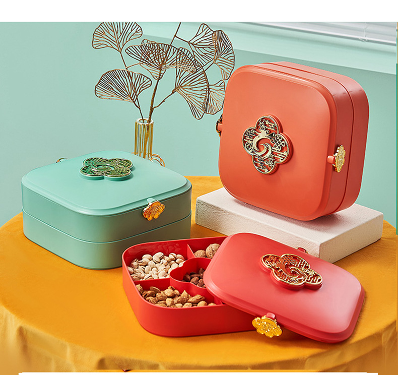 【新春风味;分格收纳】中国红单层果盘糖果盒,细腻的设计搭配实用的分格带盖子,防尘防潮,干果坚果尽在你手中;喜庆零食令人垂涎欲滴;为你带来满满的温馨与欢乐!