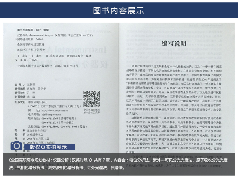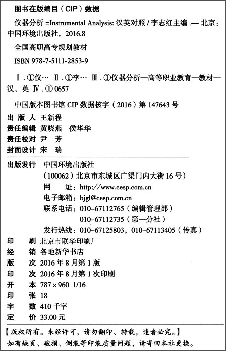 仪器分析(汉英对照)全国高职高专规划教材 李志红 环境保护图书 环境监测 9787511128539