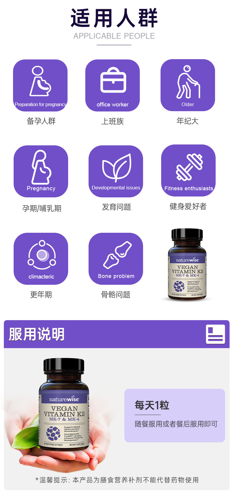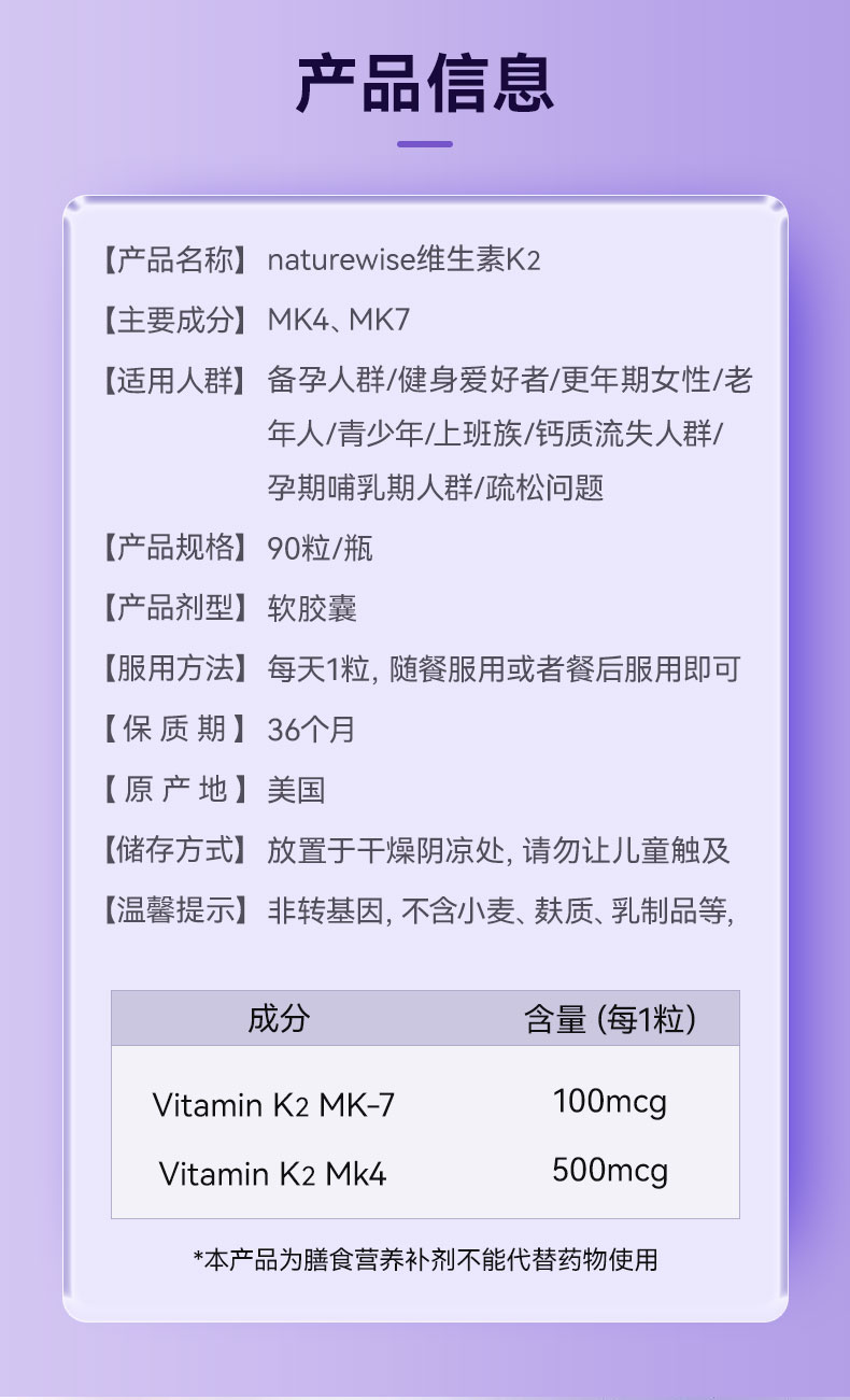 【日常好物丨Naturewise维生素K2软胶囊WH 90粒】制作成贴心小颗粒,孩子吞服更方便,每日一粒,供给人体所需