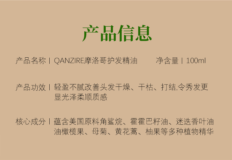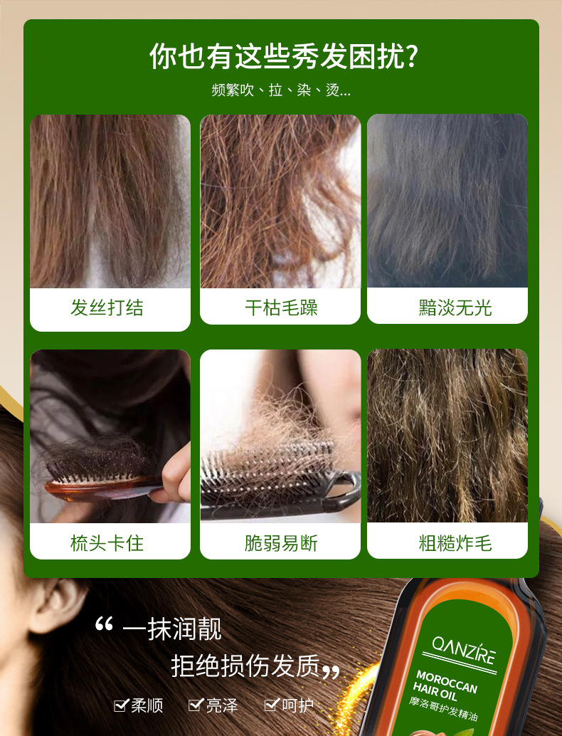 【九九】】摩洛哥护发精油 改善干枯毛躁发油免洗柔顺 2瓶