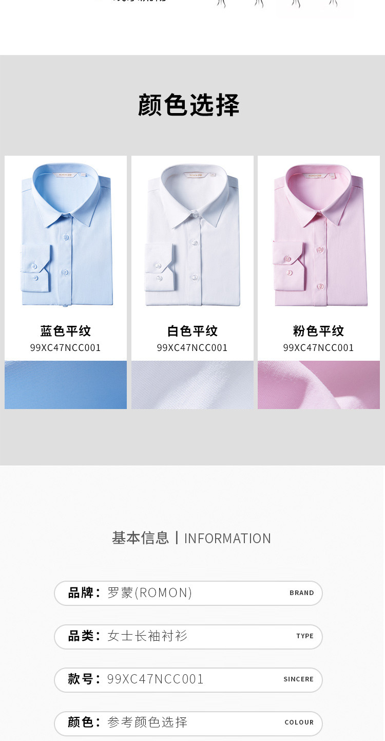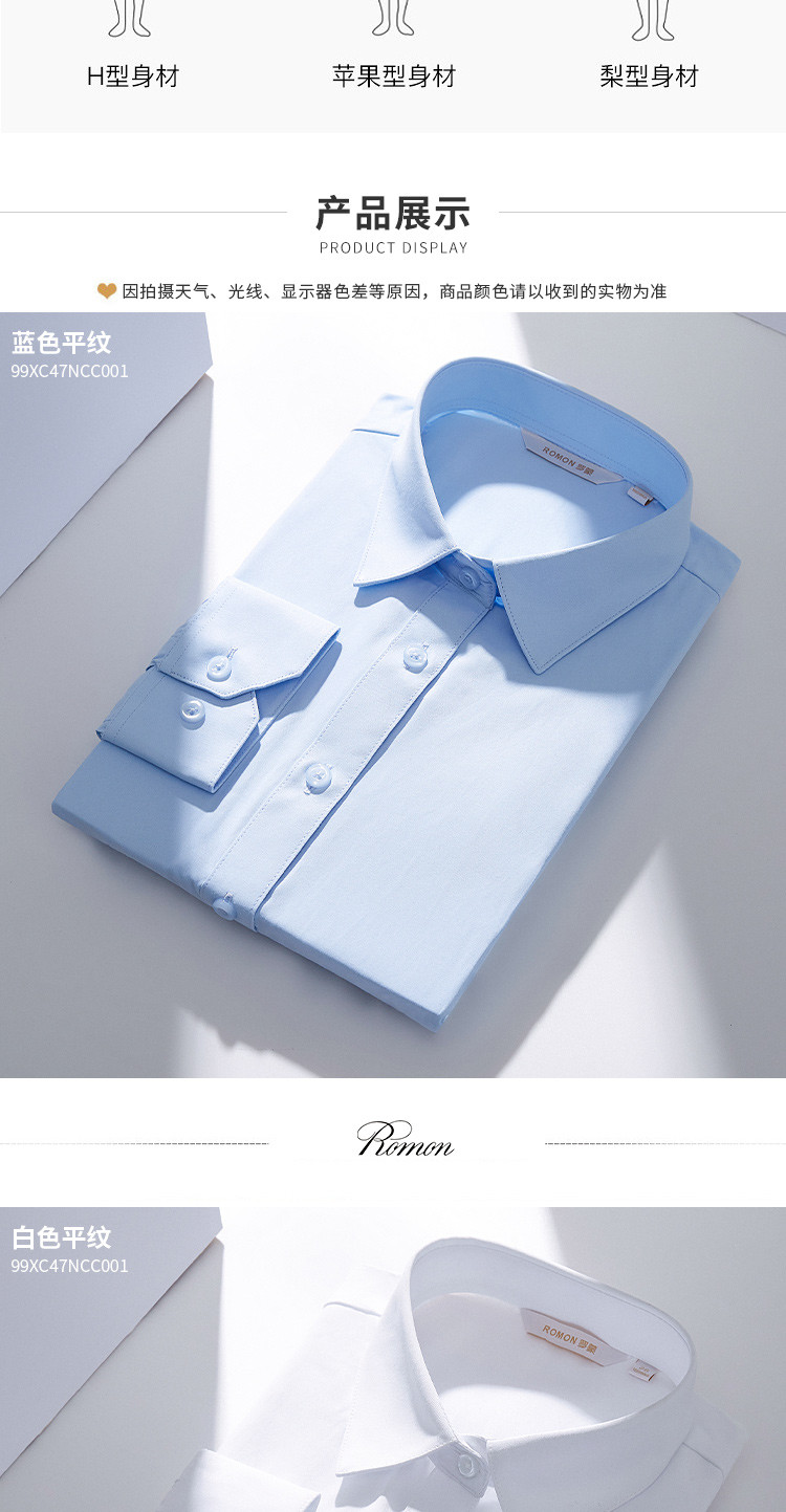 【专柜定制款】罗蒙春夏女装长袖衬衫女士正装商务通勤百搭基础款衬衣