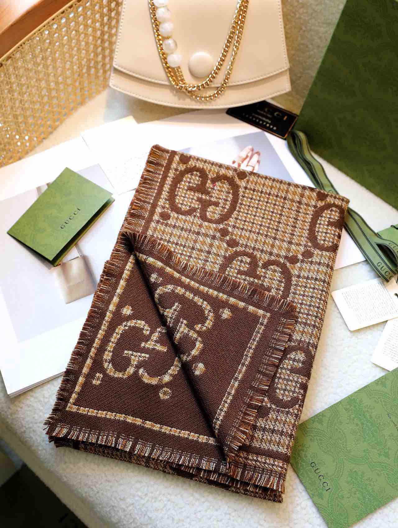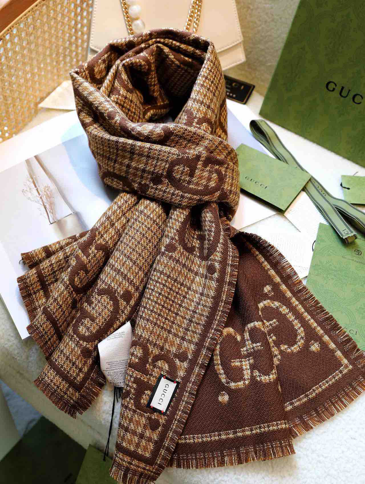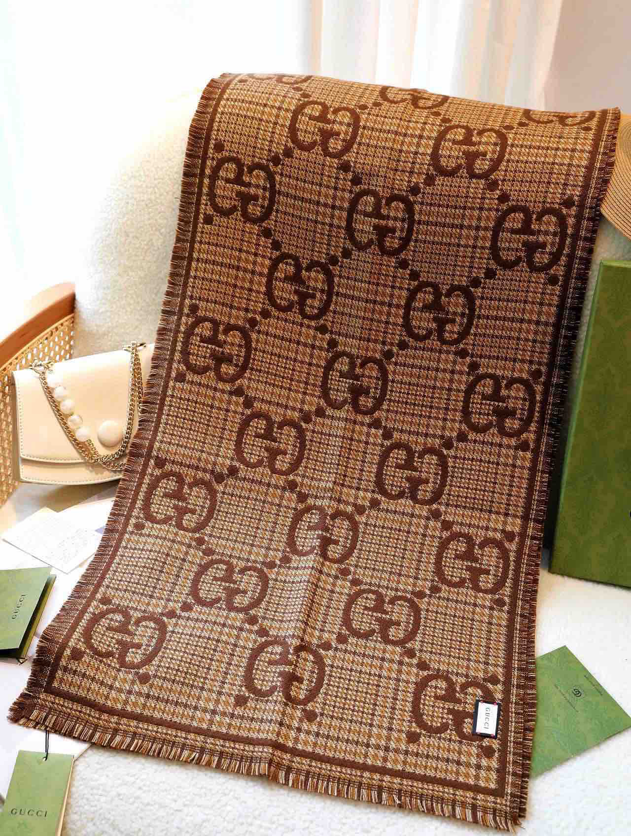 Gucci格纹围巾-棕色