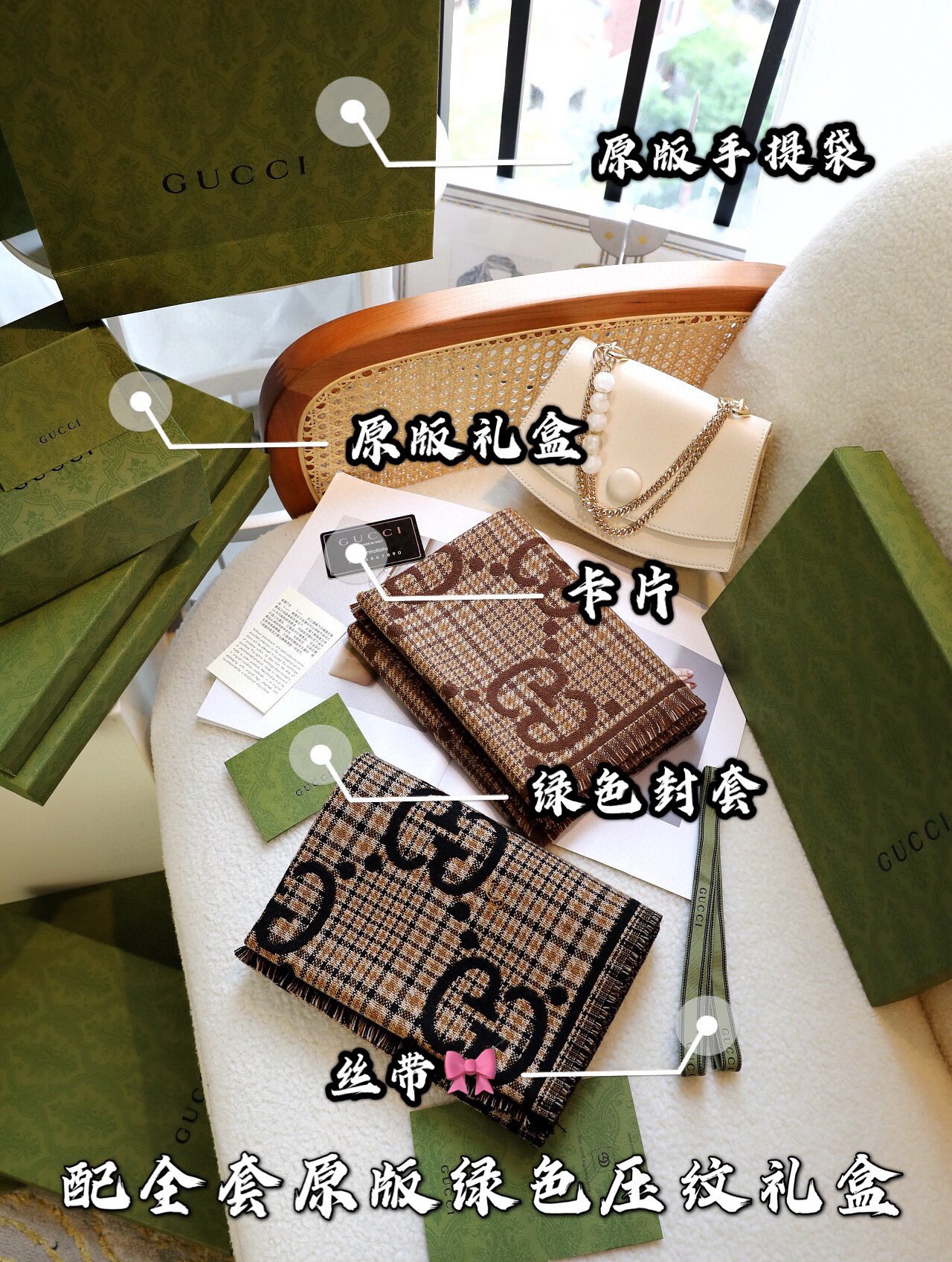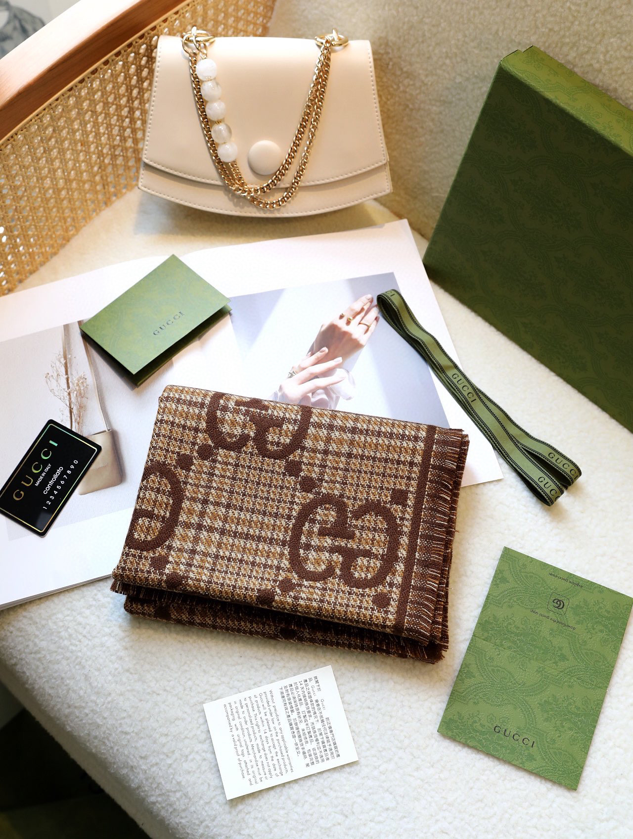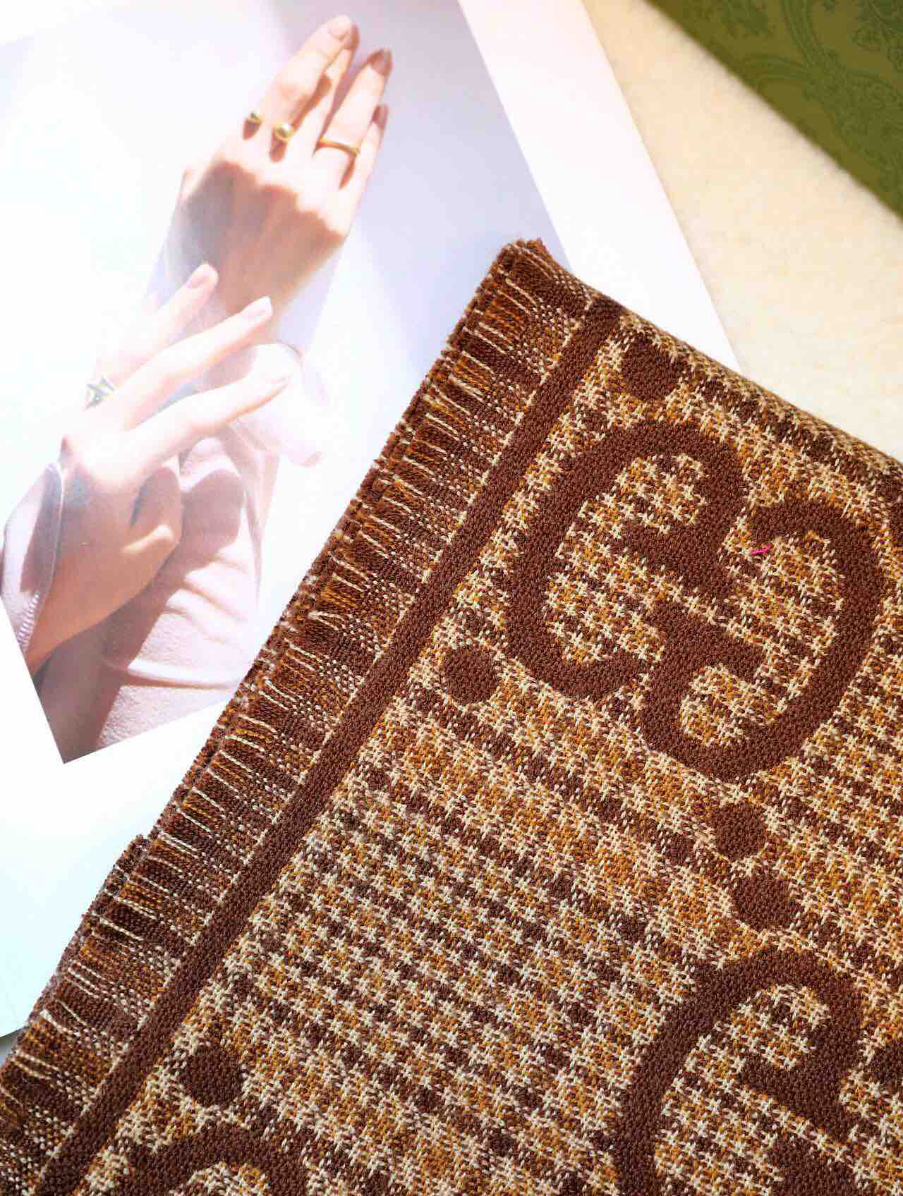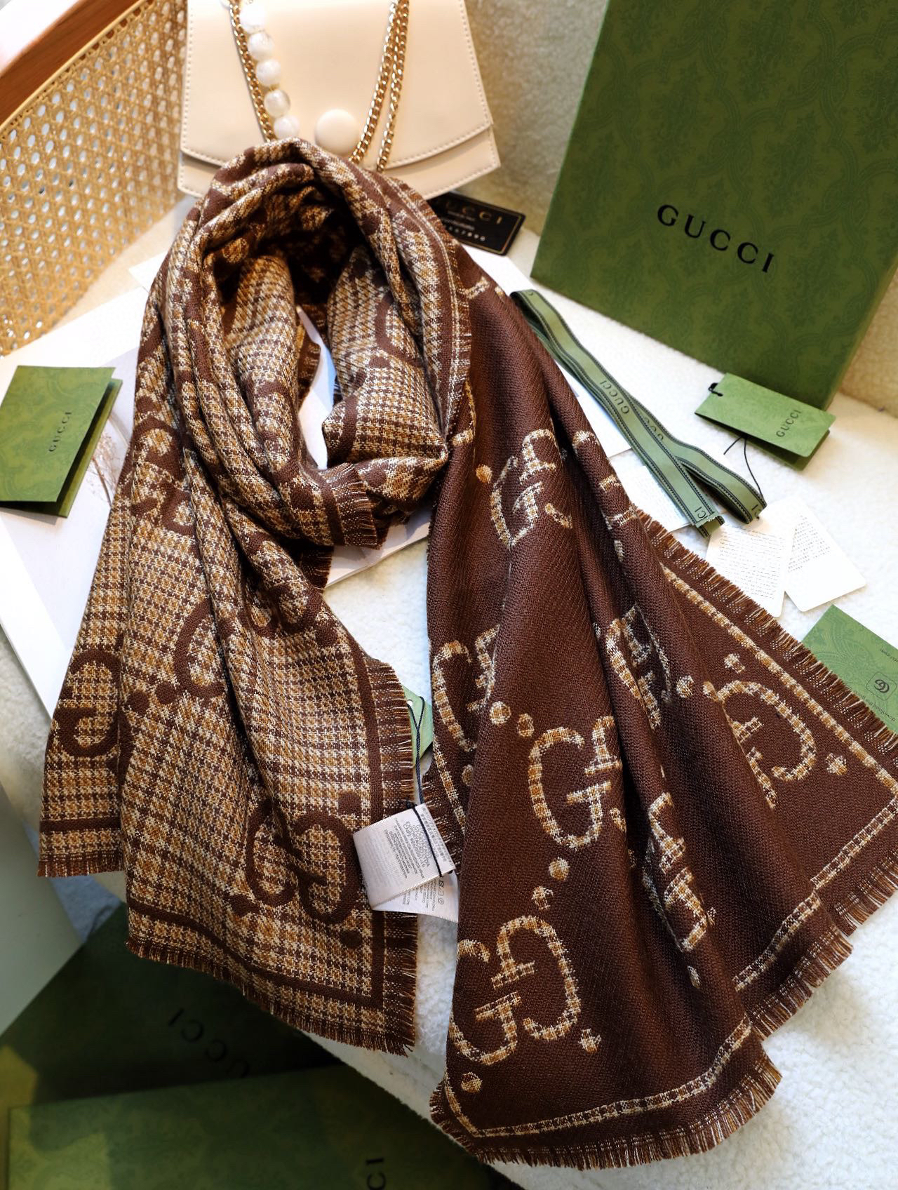 Gucci格纹围巾-棕色