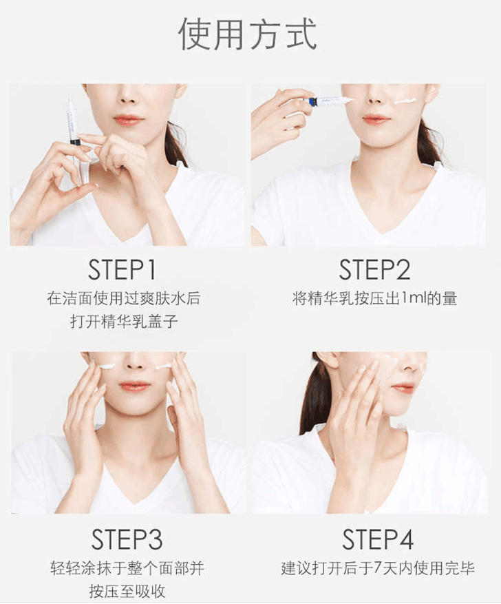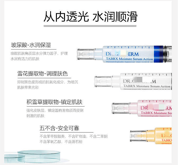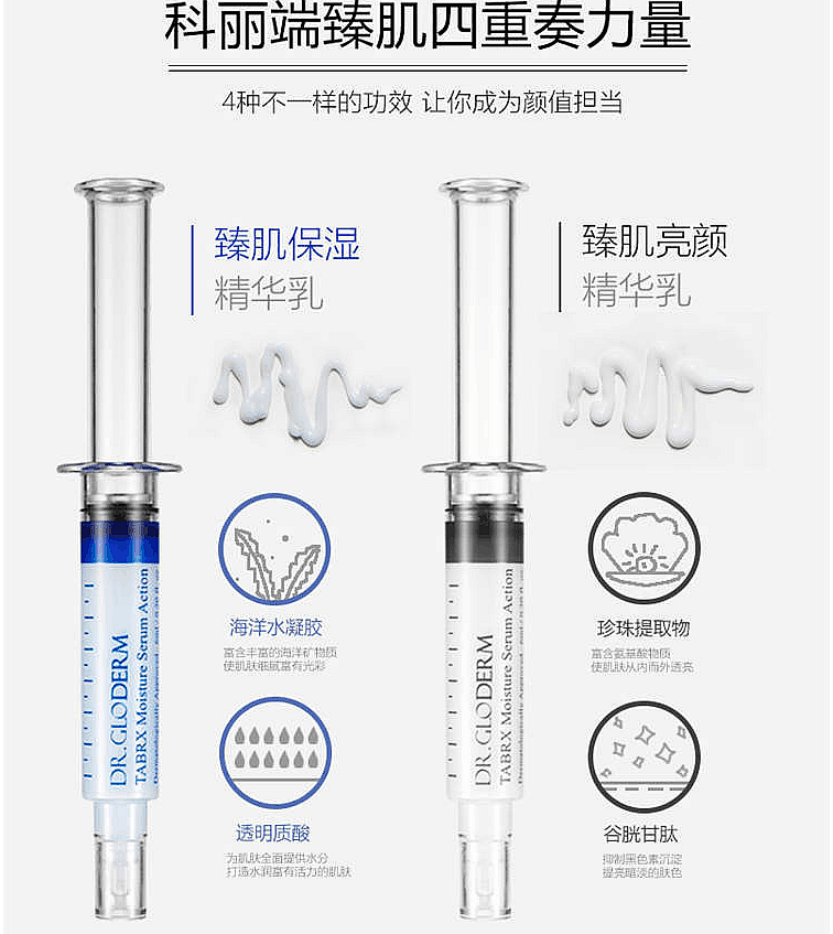 Dr.Gloderm科丽端臻肌精华乳采用针剂包装,包含保湿、提亮、紧致、抗皱共四款产品!