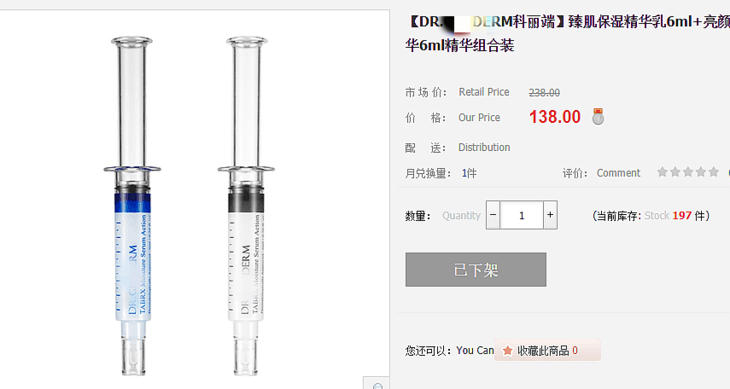 商品名称:【新品】DR.GLODERM科丽端臻肌蓝色保湿6ml*5+黑色亮颜精华乳6ml *5