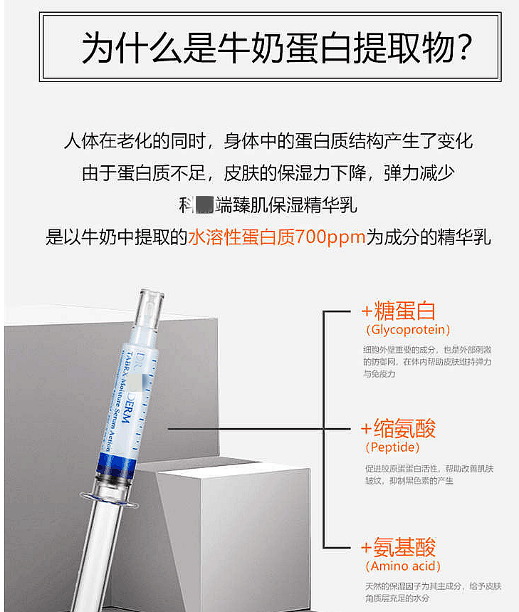 Dr.Gloderm科丽端臻肌精华乳是以牛奶中提取的水溶性蛋白质作为高浓缩精华乳,牛奶蛋白提取物中含有大量的糖蛋白、缩氨酸、氨基酸等,能够深入补水,滋润肌肤,平滑肌肤纹理,焕活肌肤光泽,配合其他成分搭配出不同功效的精华乳!