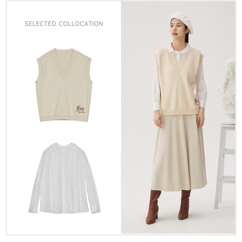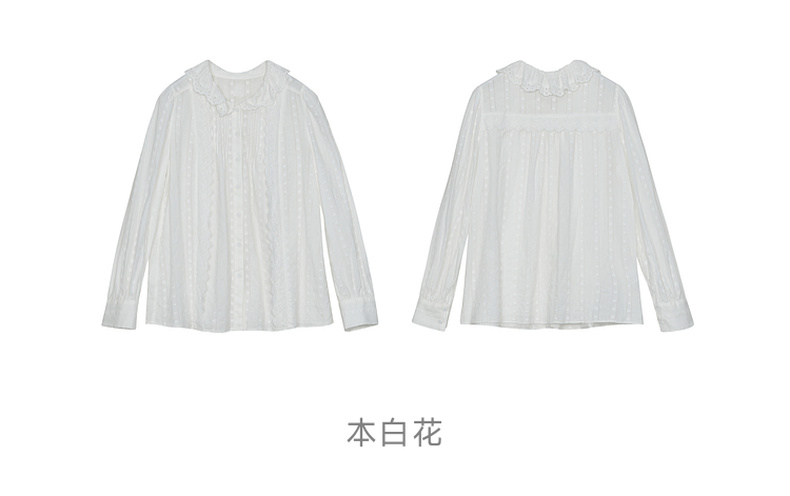 谜底白衬衫长袖女士2024秋新品复古田园风荷叶边领衬衣243MC1007