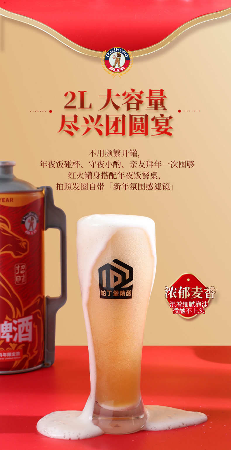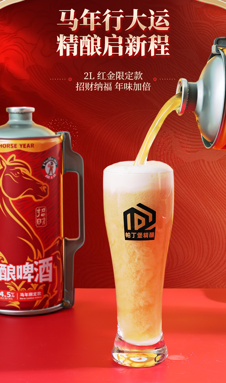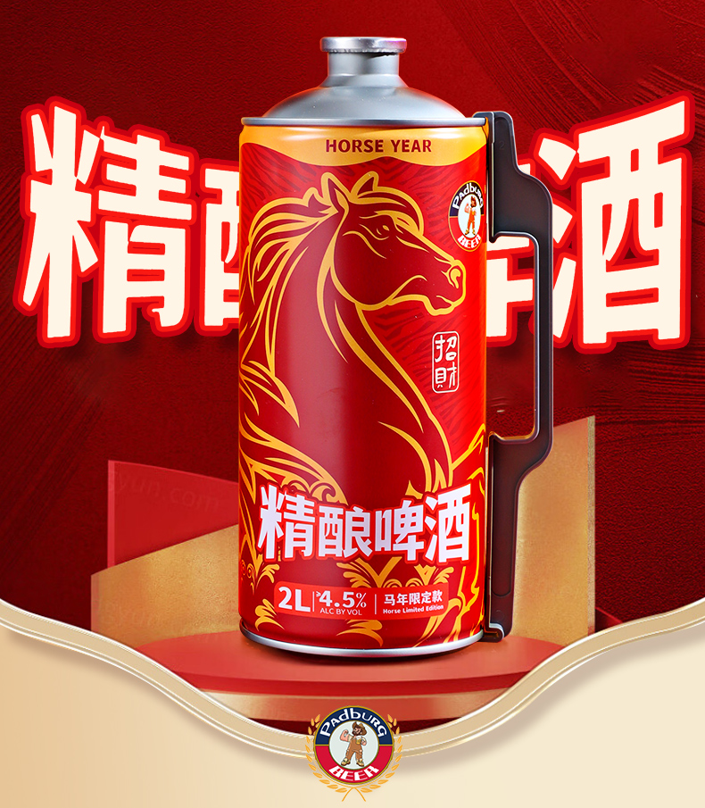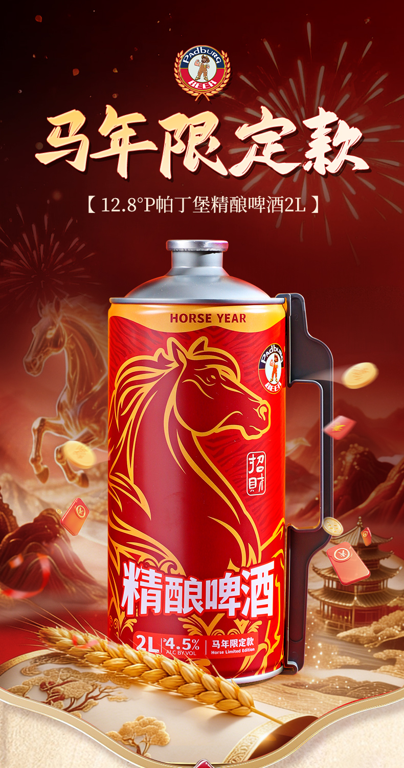 (马年新包装)帕丁堡马年限定精酿啤酒2L*6【臻选好酒】-简易包装