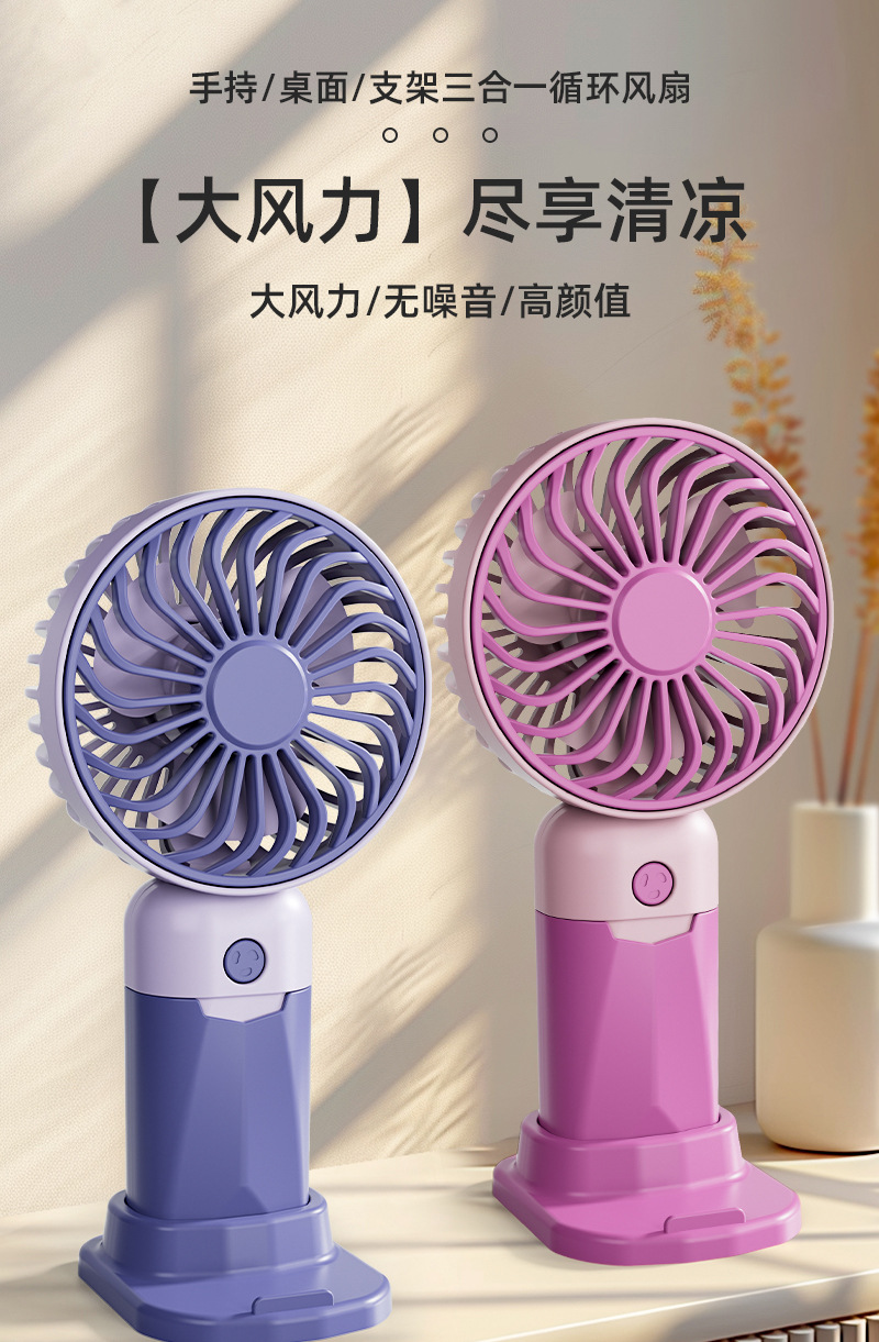 【19.9抢❗随身迷你小风扇 】手持+桌面+支架三合一循环风扇,三档强劲调节模拟自然风,手持小风扇便携式充电USB办公室桌面宿舍小风扇QQ