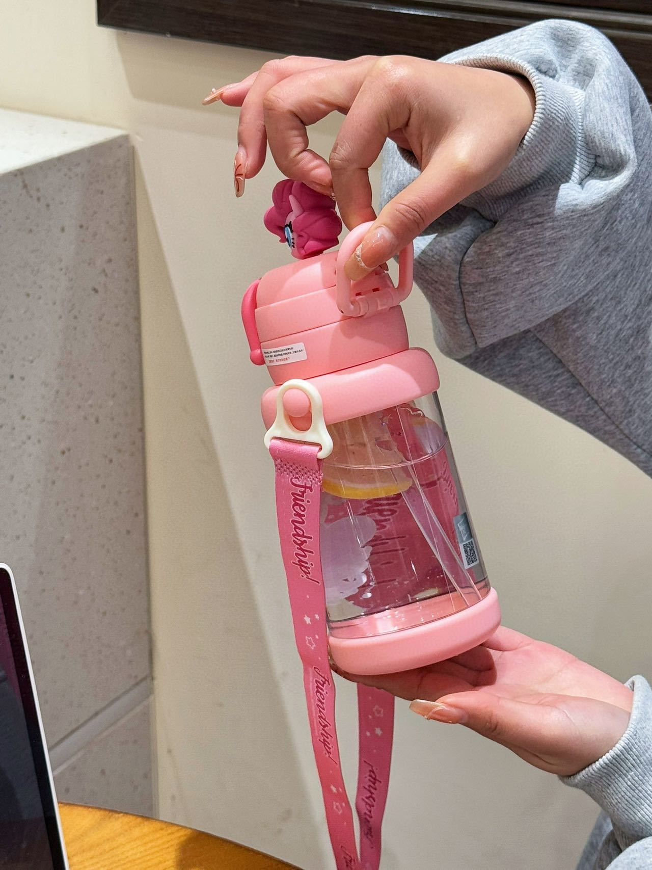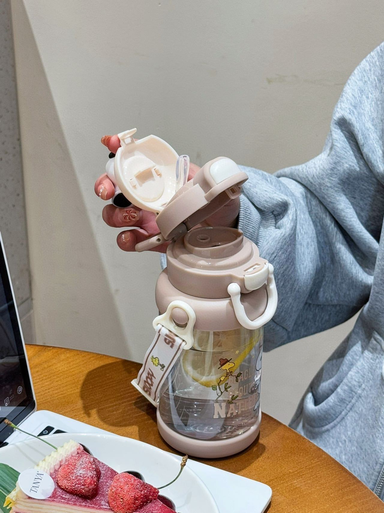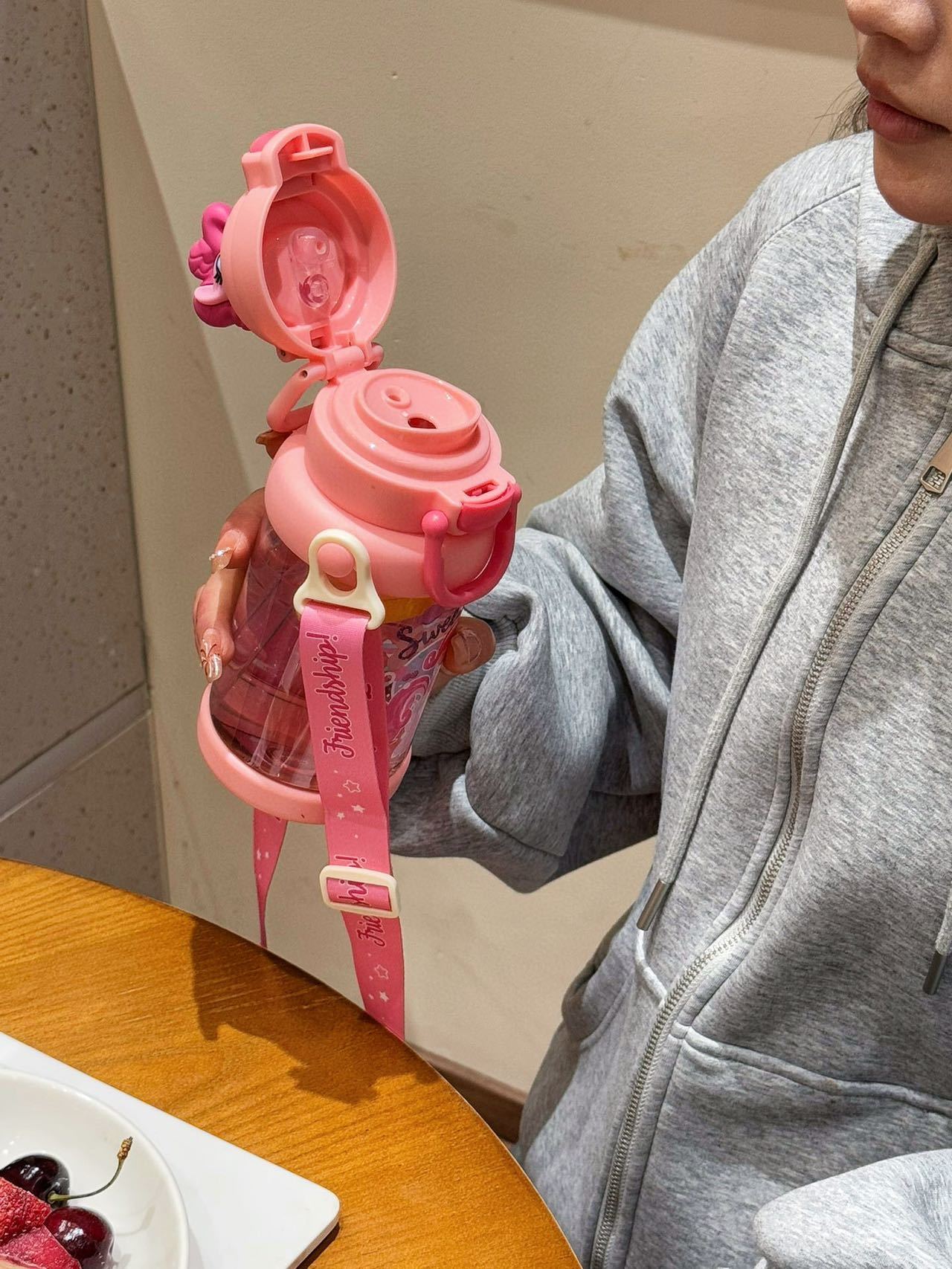 双饮口:左边吸管 右边直饮 这款双饮杯,完全符合我的审美 自从拥有了它饮水量直线上升 每天8杯水小意思! 非常软萌可爱,拿在手里很可爱 0-100°C都不是问题 完全可以拿着去接热水哦~ 最爱的就是它的双饮杯盖设计 打开可以是吸管口,也可以是直饮口 使用起来相当方便 也方便和喜欢的人分享一杯水哦 赠送的背带,出门携带很方便!