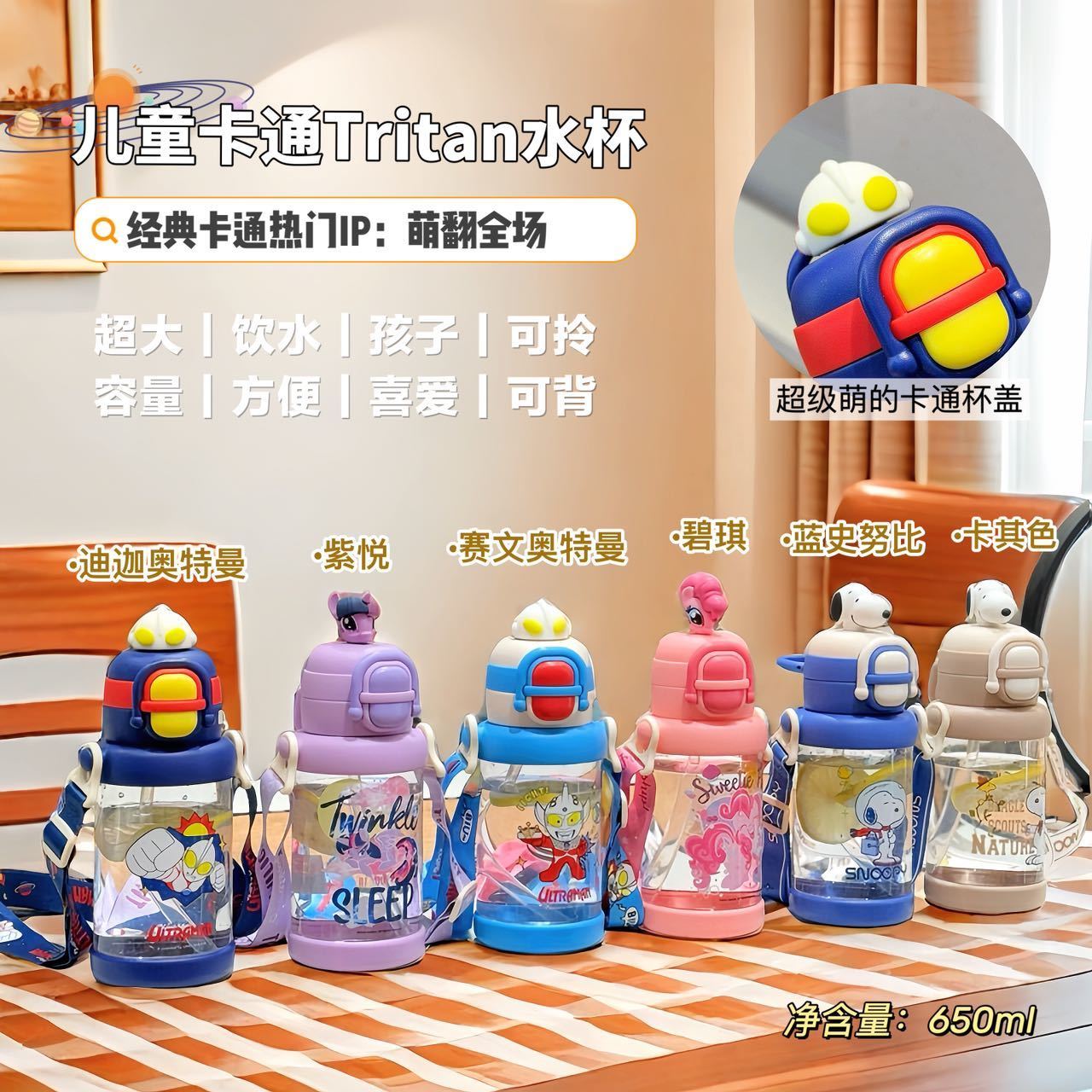 【卡通儿童Tritan水杯】正版授权!经典热门IP,小马宝莉❗奥特曼❗史努比❗6款🉑️选,650ml大容量❗️ ✅一盖双饮水口,吸管口✙直饮口,带安全锁 ✅Tritan+PP+硅胶材质,无毒无异味,耐摔耐高温 ✅送可调节背带,可手提可斜挎,携带方便 赶紧给家里的宝贝入手啦🔥🔥🔥